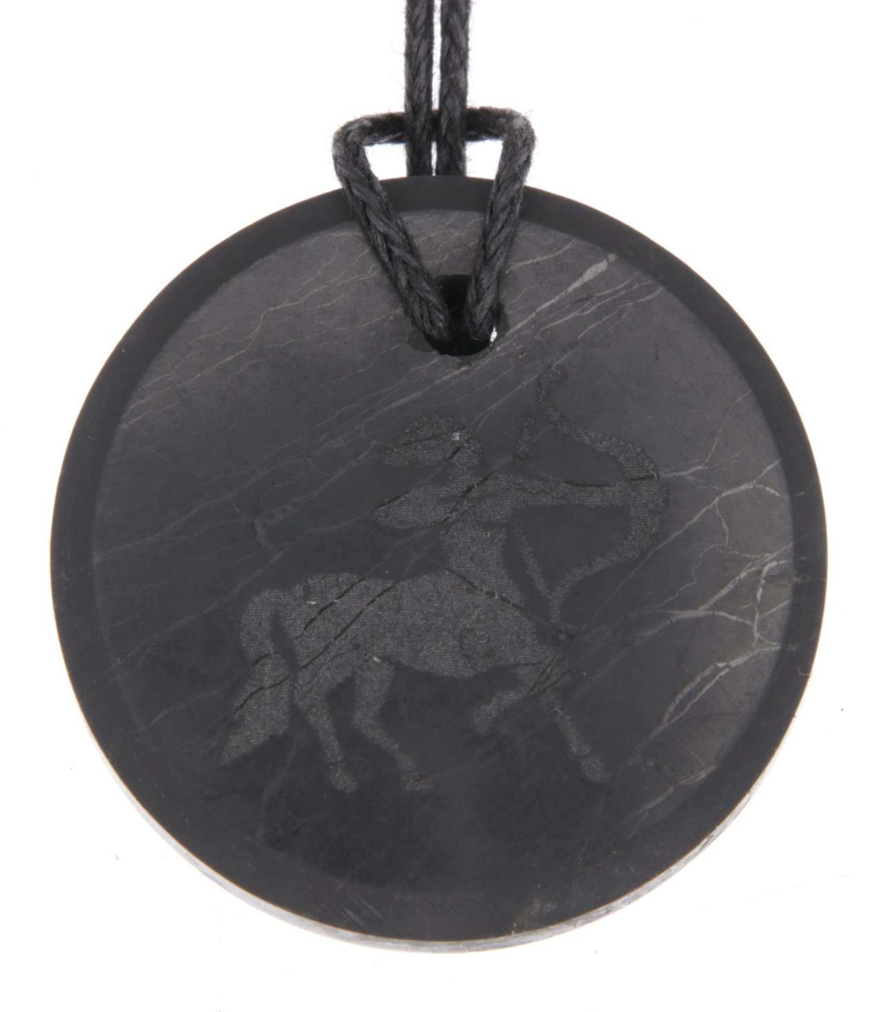 Edelstein Sternzeichen-Anhänger „Schütze“ aus Schungit – Ø ca. 30 mm (inkl. Stoffband)