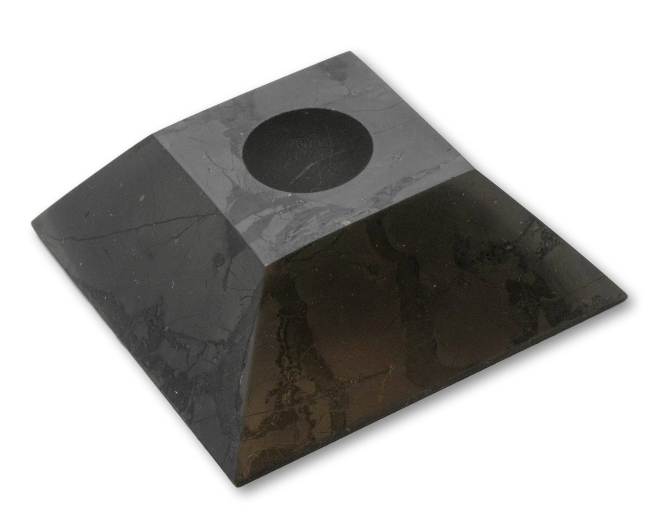 Der quadratische Schungit Kugel-Untersetzer ist die ideale Basis für Schungit-Kugeln und verbindet natürliche Schlichtheit mit eleganter Handwerkskunst.