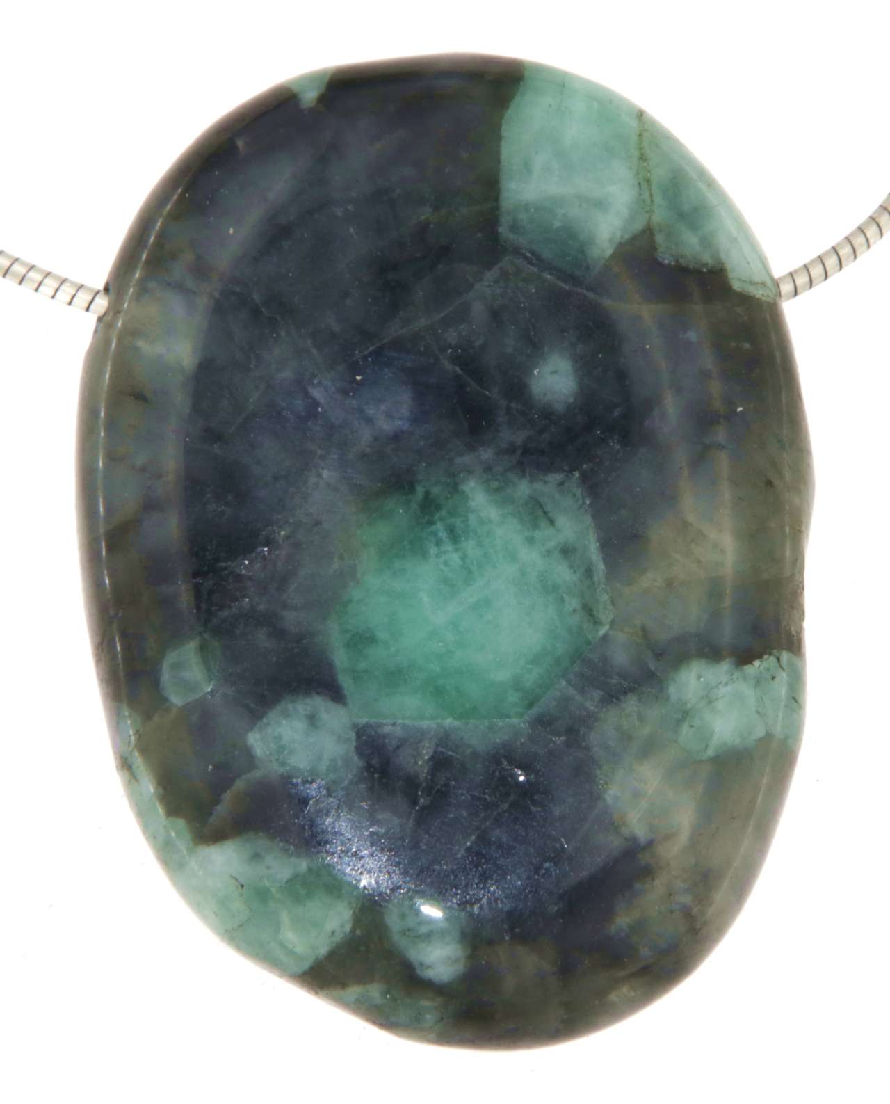 Edelstein Trommelstein Anhänger aus Smaragd – mit Stoffband