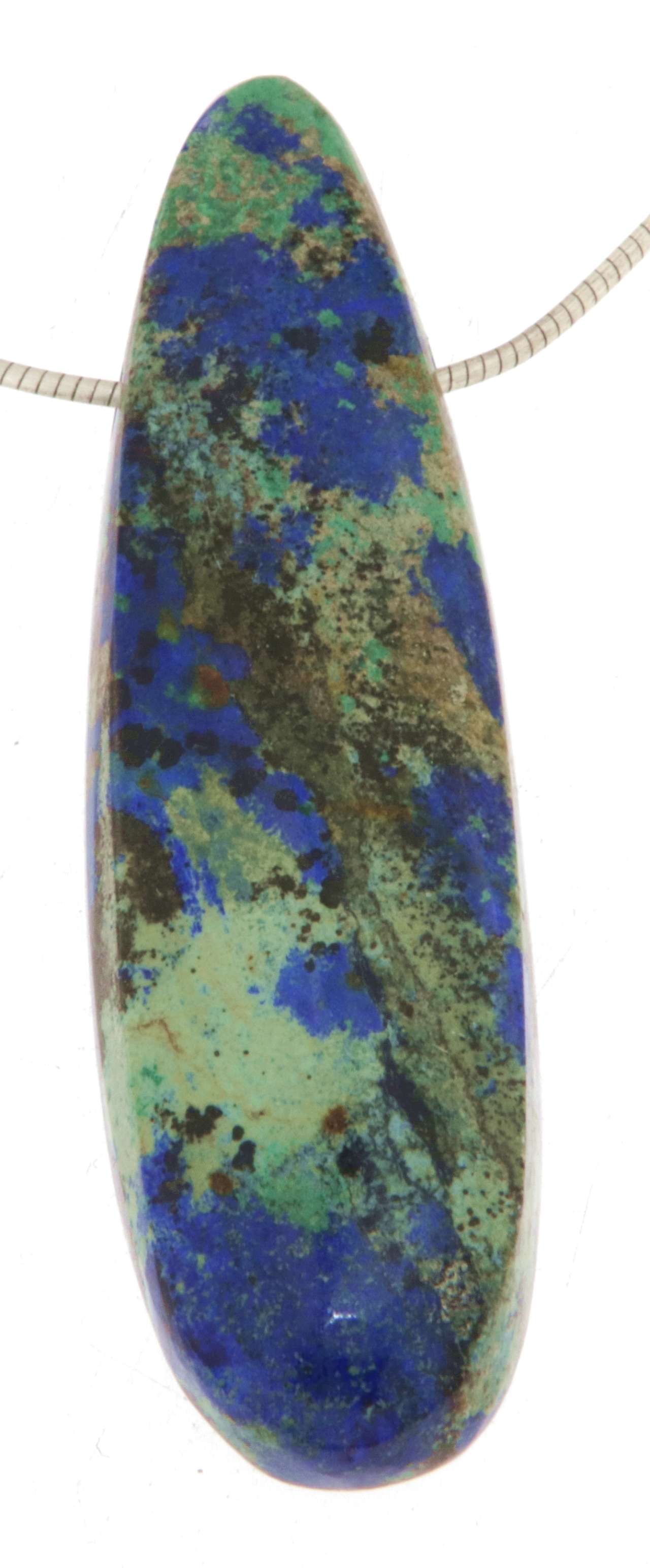 Ein ausdrucksstarker Edelsteinanhänger aus Azurit-Malachit, der durch sein intensives Farbspiel aus leuchtendem Blau und tiefem Grün fasziniert.