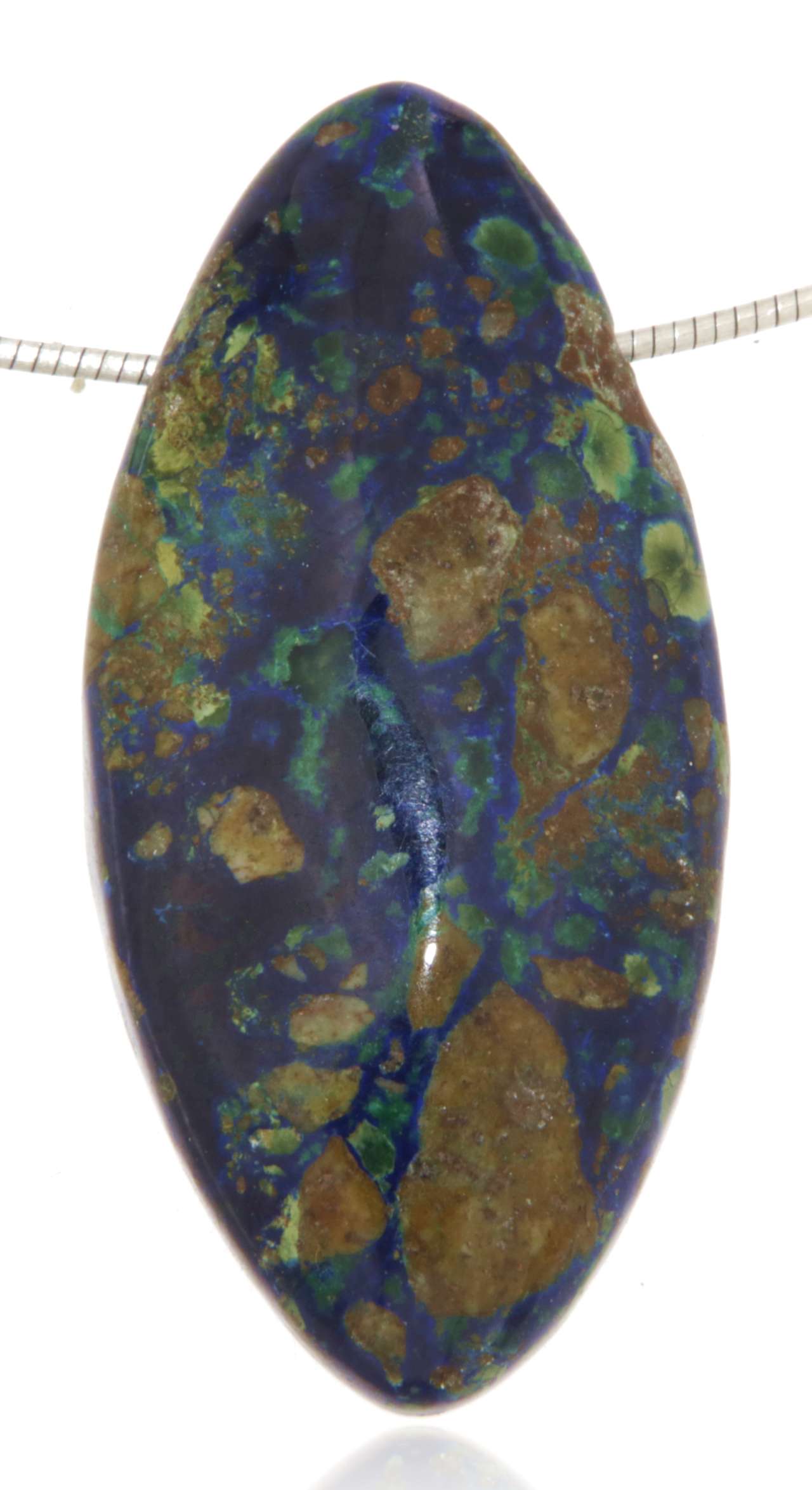 Ein eindrucksvoller Trommelstein-Anhänger aus Azurit-Malachit, der durch seine faszinierende Farbvielfalt und natürliche Maserung besticht. Das Zusammenspiel von tiefem Königsblau (Azurit) und leuchtendem Grün (Malachit) macht jeden Anhänger zu einem echten Unikat der Natur – elegant, lebendig und ausdrucksstark zugleich.