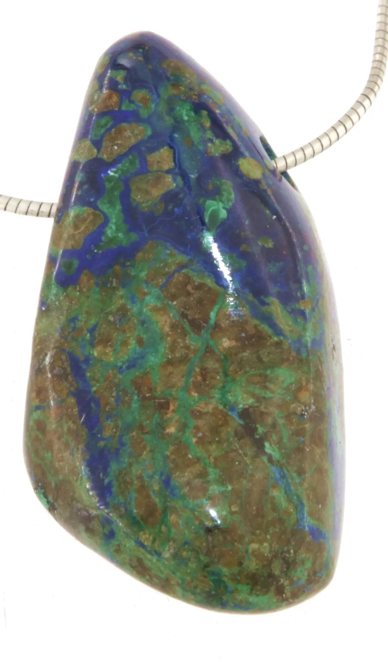 Edelstein-Trommelstein-Anhänger aus Azurit-Malachit – inkl. Stoffband (100 cm)