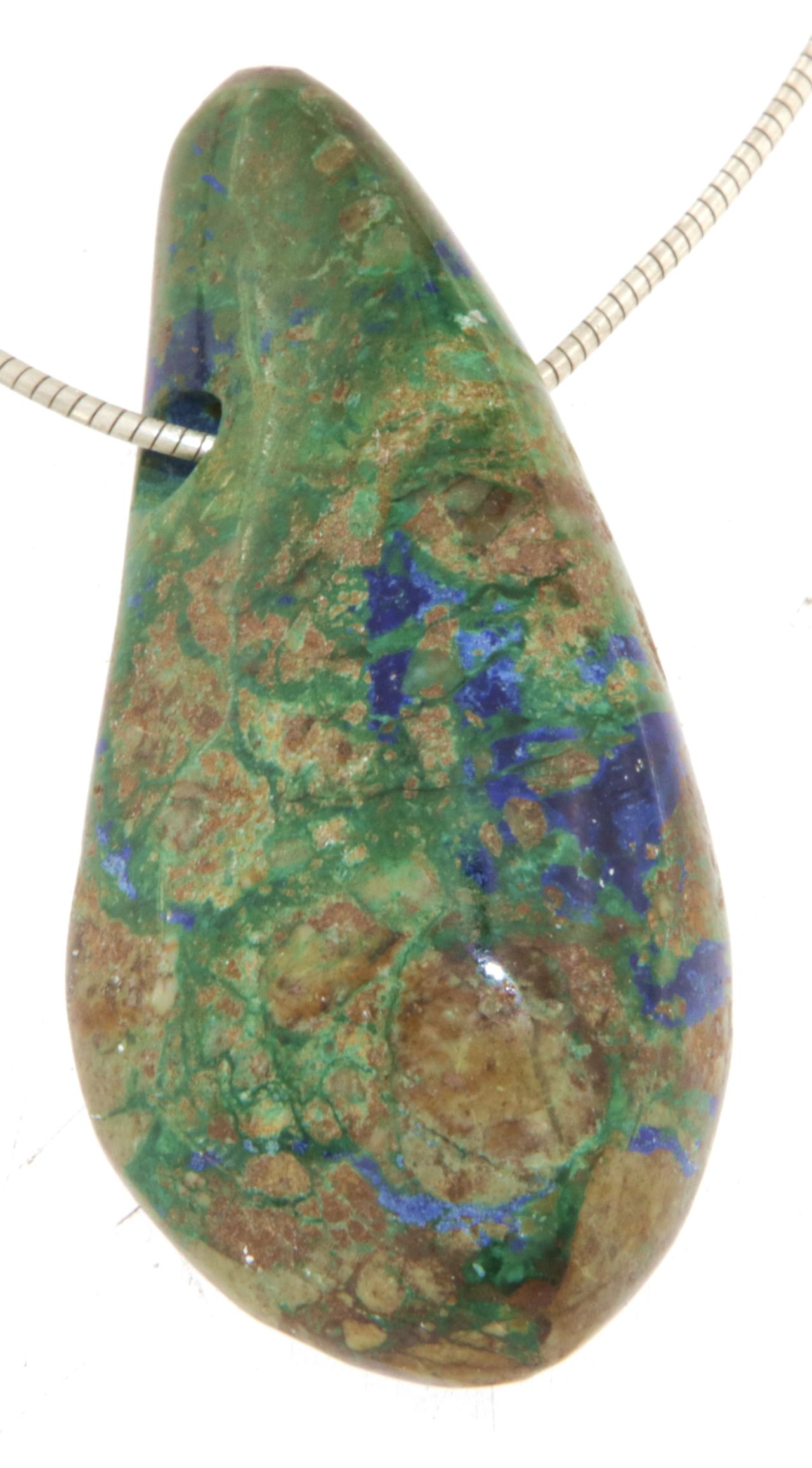 Edelstein Trommelstein Anhänger aus Azurit-Malachit – inkl. Stoffband
