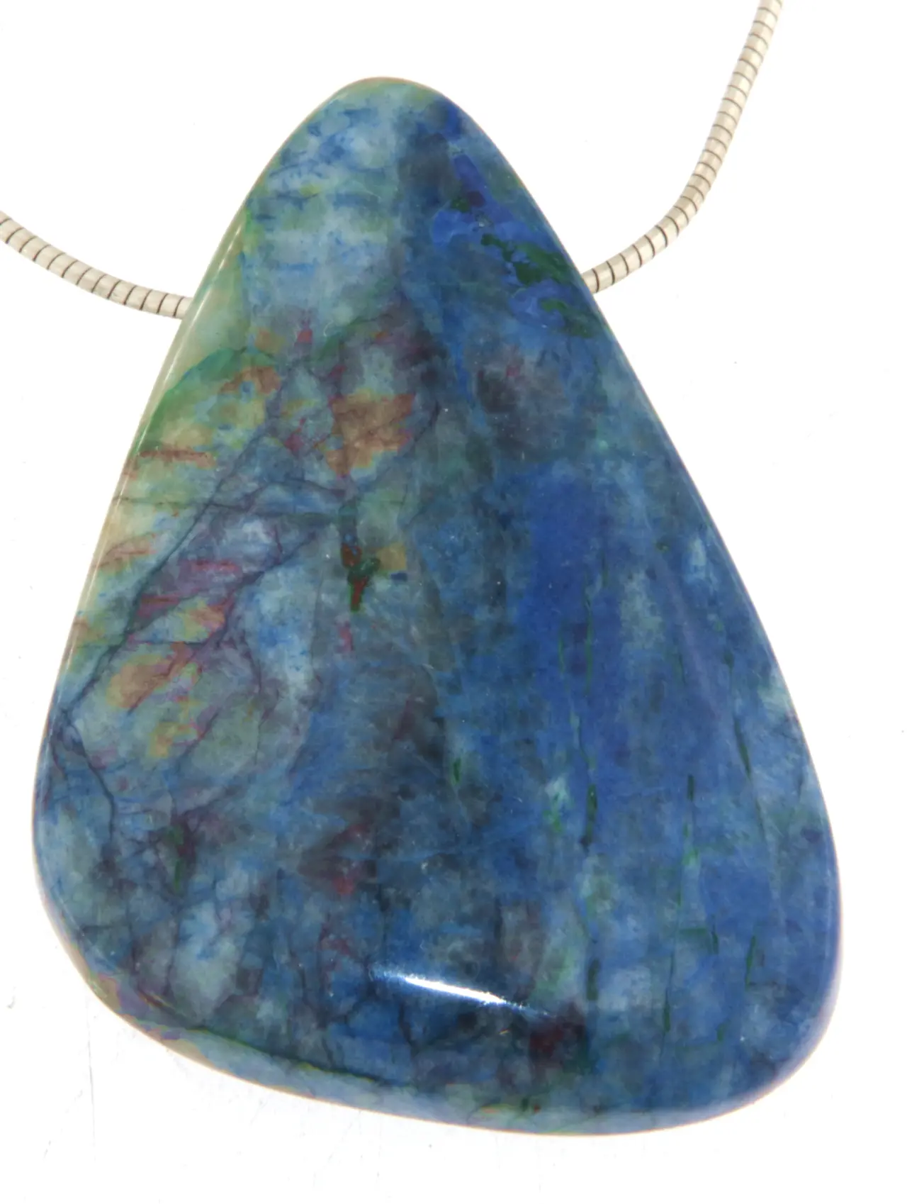 Edelstein-Trommelstein-Anhänger aus Azurit-Malachit – inkl. Stoffband (100 cm)