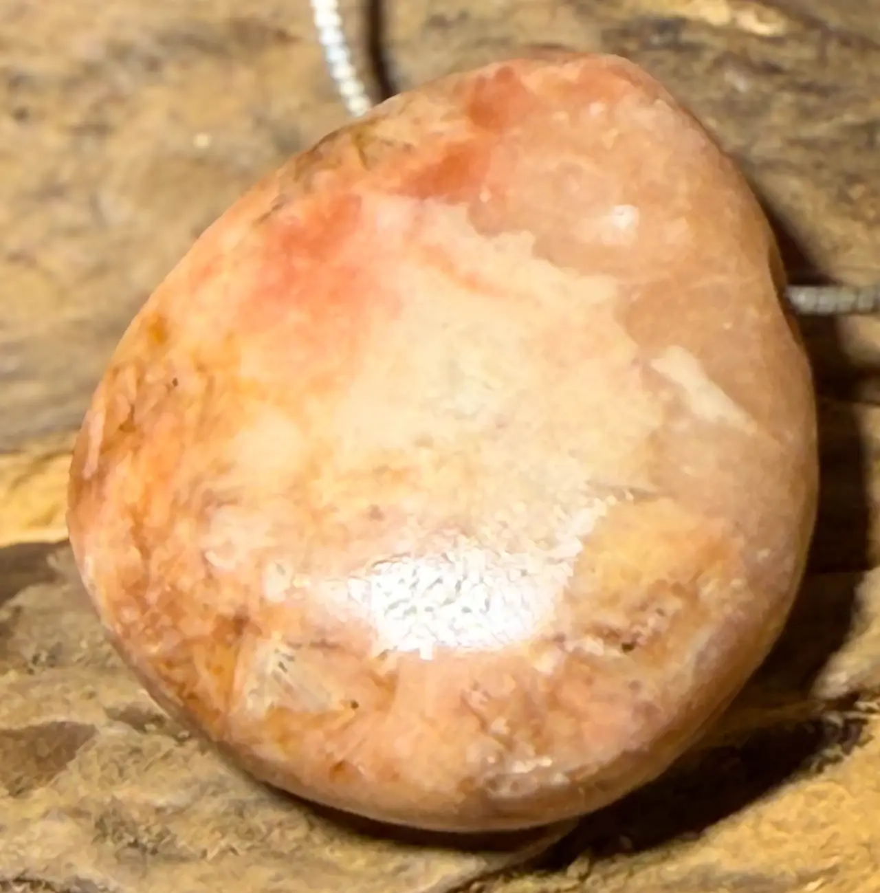 Sie erhalten genau den abgebildeten Baryt-Trommelsteinanhänger – ein dezentes und zugleich charakterstarkes Schmuckstück aus der Natur.