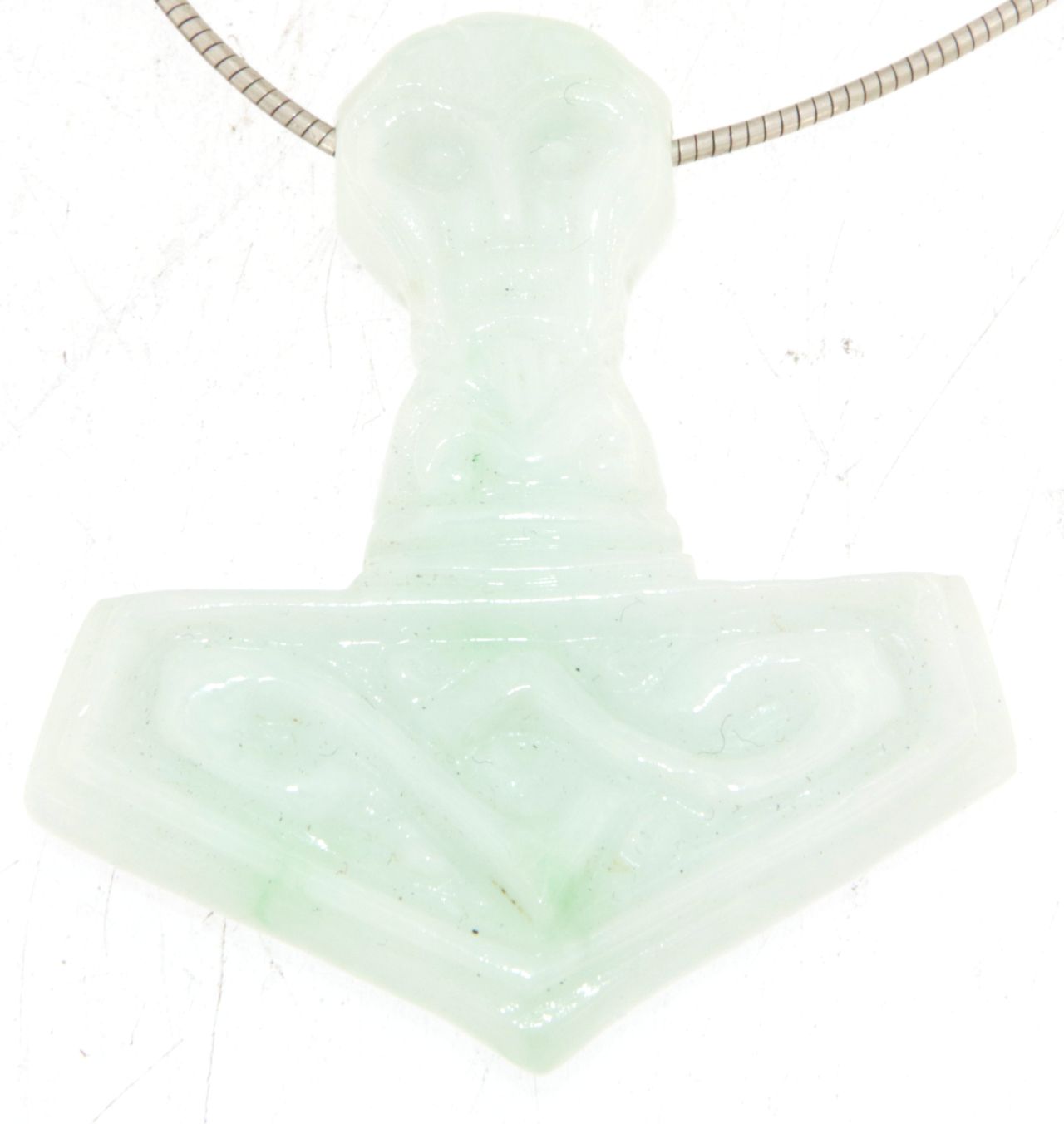 Edelstein Thor’s Hammer Anhänger aus Burma Jade – handgeschnitzt (Unikat)