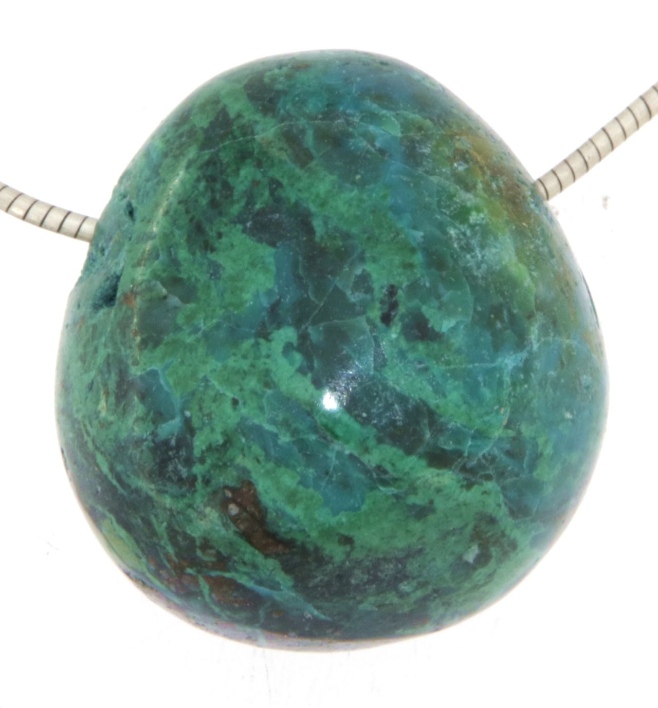 Ein edler Edelsteinanhänger aus echtem Chrysokoll, fein poliert und von natürlicher Farbvielfalt geprägt.