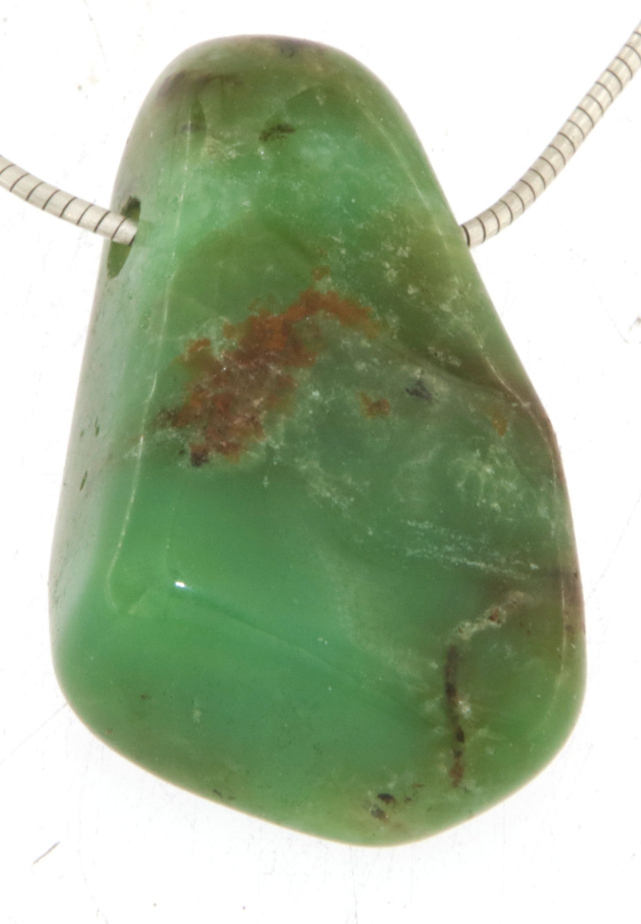 Sie erhalten genau den abgebildeten Chrysopras-Trommelsteinanhänger – ein edles Natur-Unikat mit leuchtender, natürlicher Farbintensität.