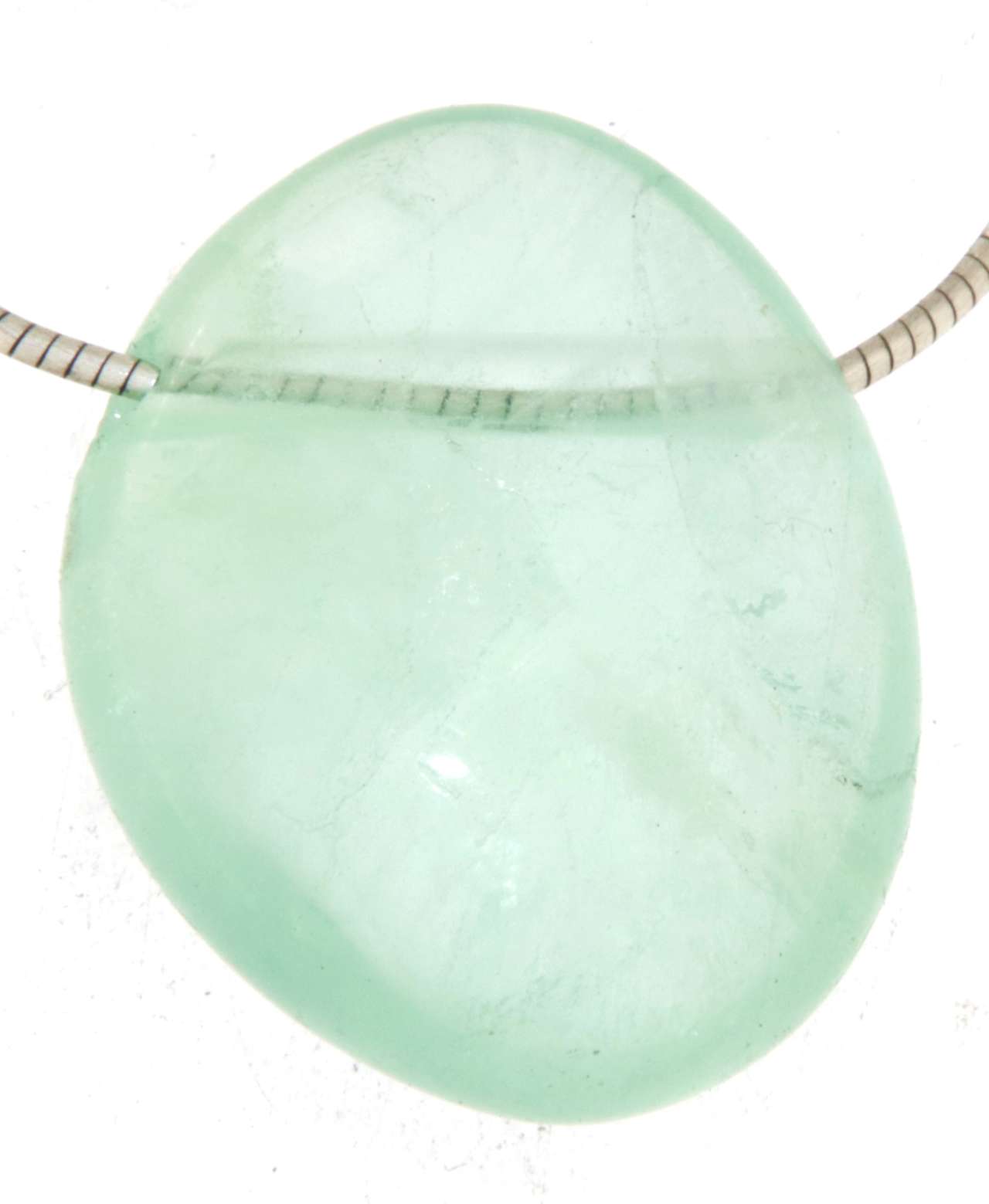 Ein wunderschöner Edelstein-Schmuckanhänger aus echtem grünem Fluorit, gefertigt aus einem polierten Trommelstein mit sanft durchscheinender Farbgebung. Der grüne Fluorit besticht durch seine klare, frische Ausstrahlung und feine Transparenz, die das Licht elegant einfängt. Er gilt als Stein der Ordnung, Klarheit und Inspiration – ein stilvoller Begleiter für Alltag und besondere Momente.
