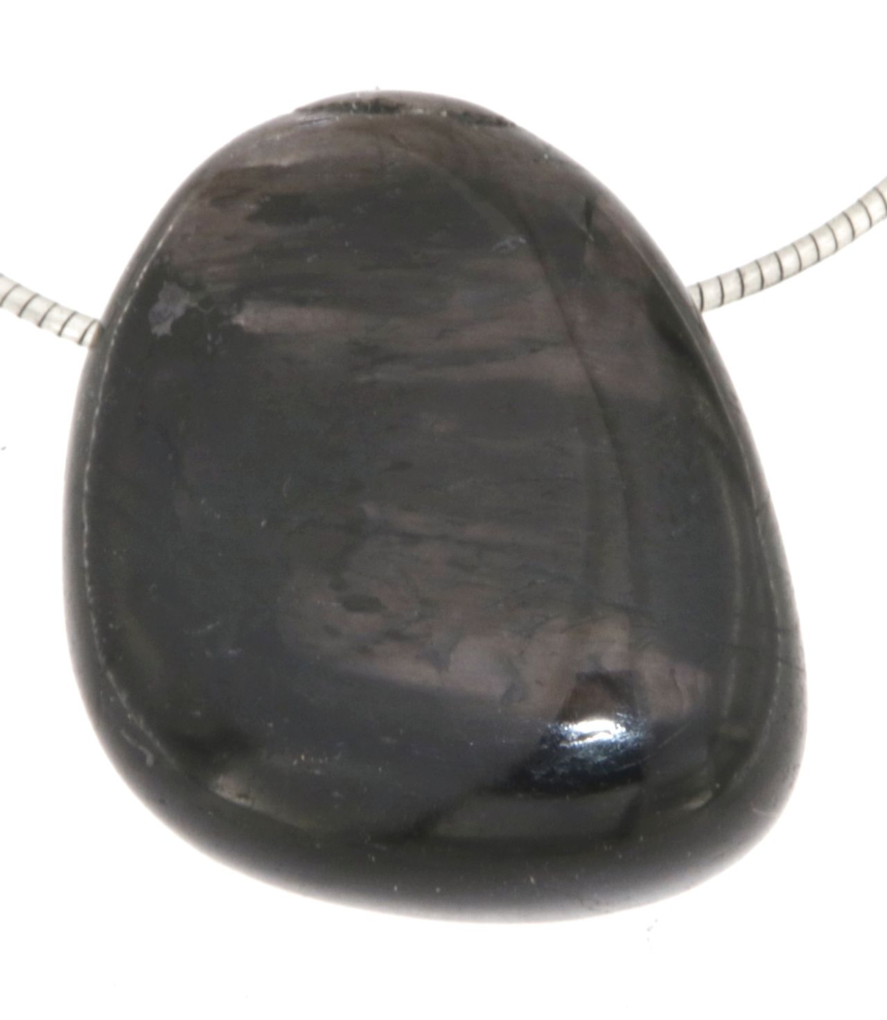 Edelstein-Trommelstein-Anhänger aus Hypersthen – mit Stoffband