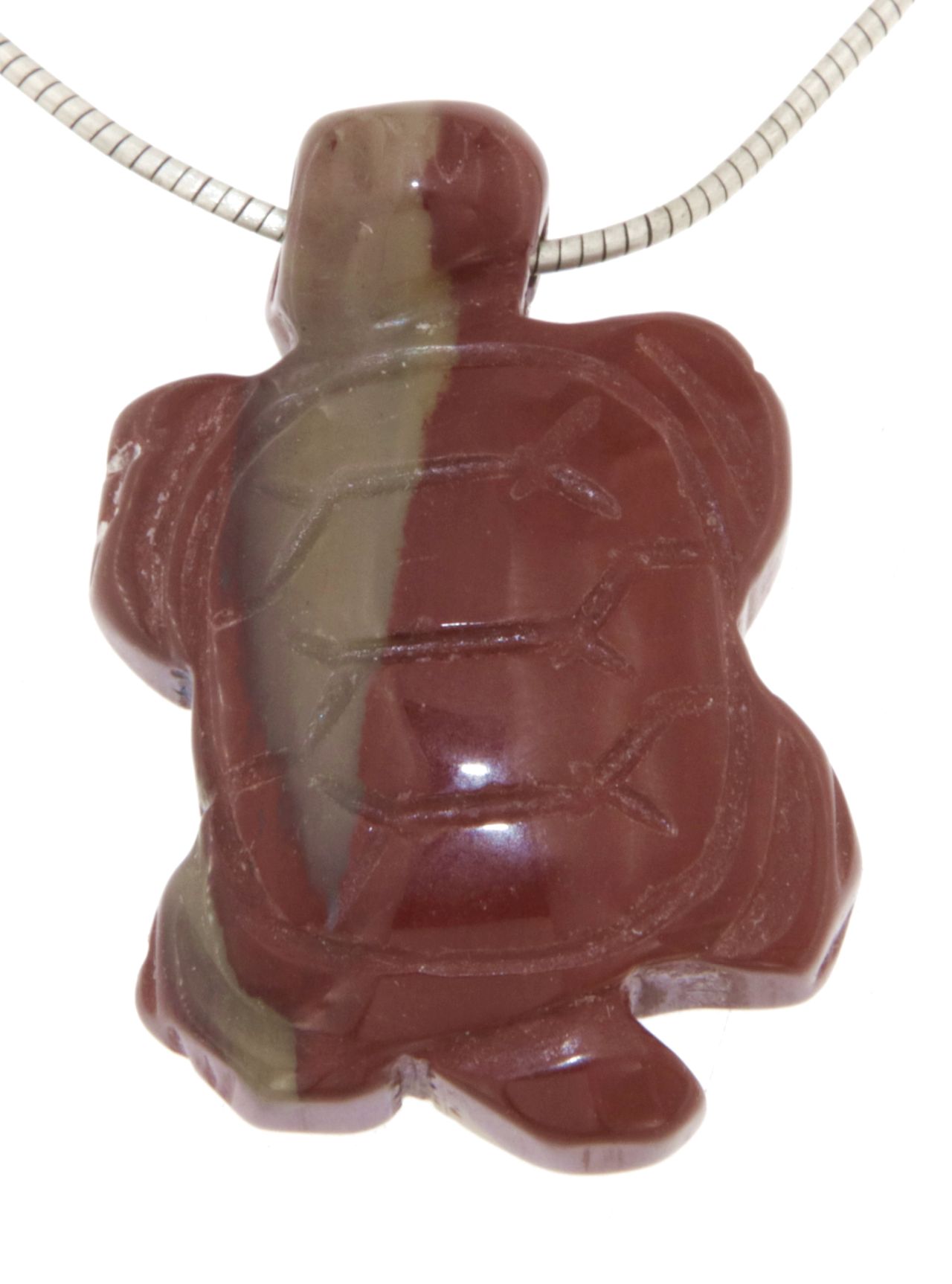 Edelsteinanhänger aus rotem Jaspis – handgeschnitzte Schildkröte – mit Stoffband