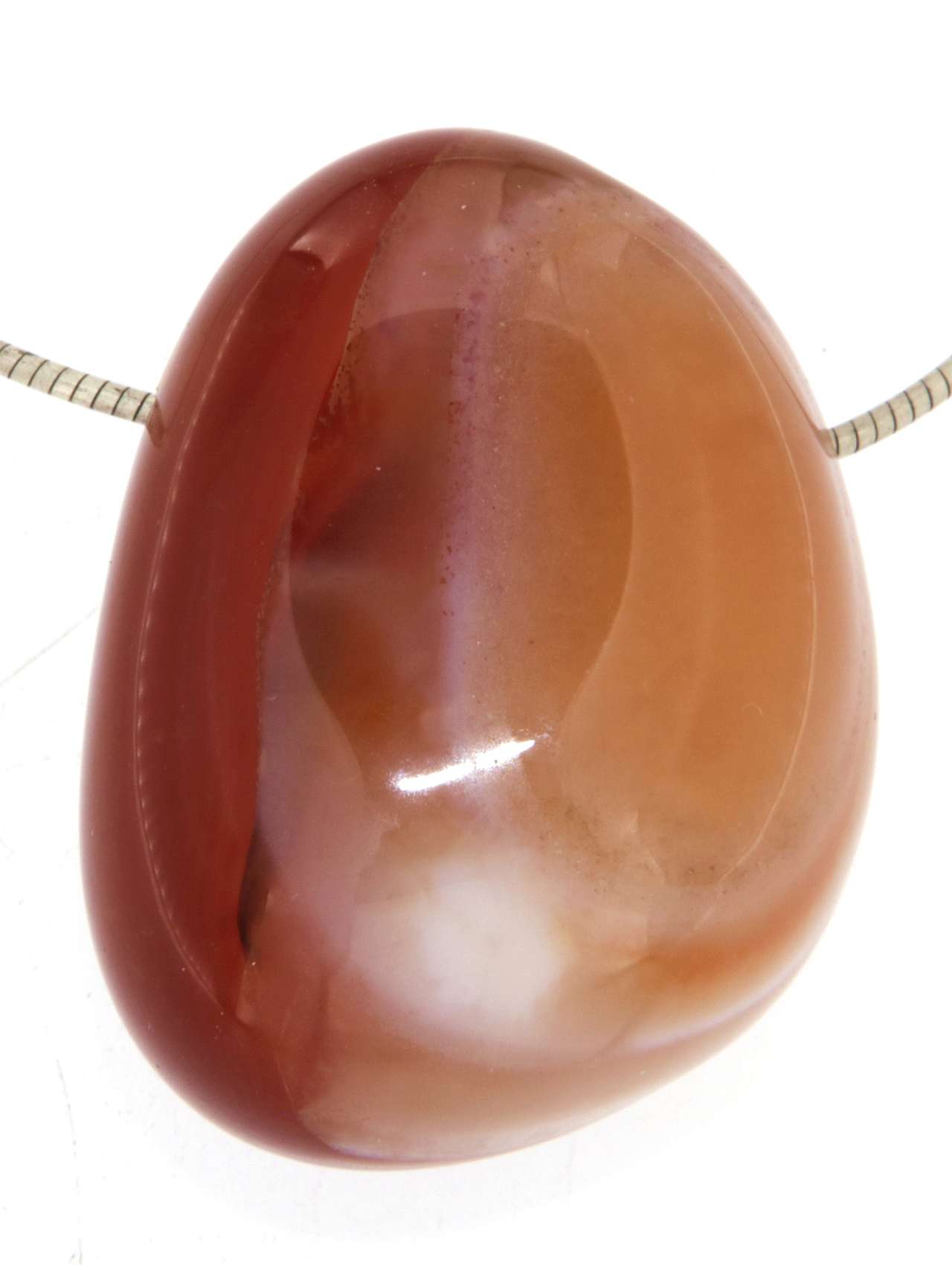 Du erhältst den abgebildeten Karneol-Trommelstein-Anhänger – ein echtes Naturunikat mit sanftem Glanz und warmer Farbwirkung.