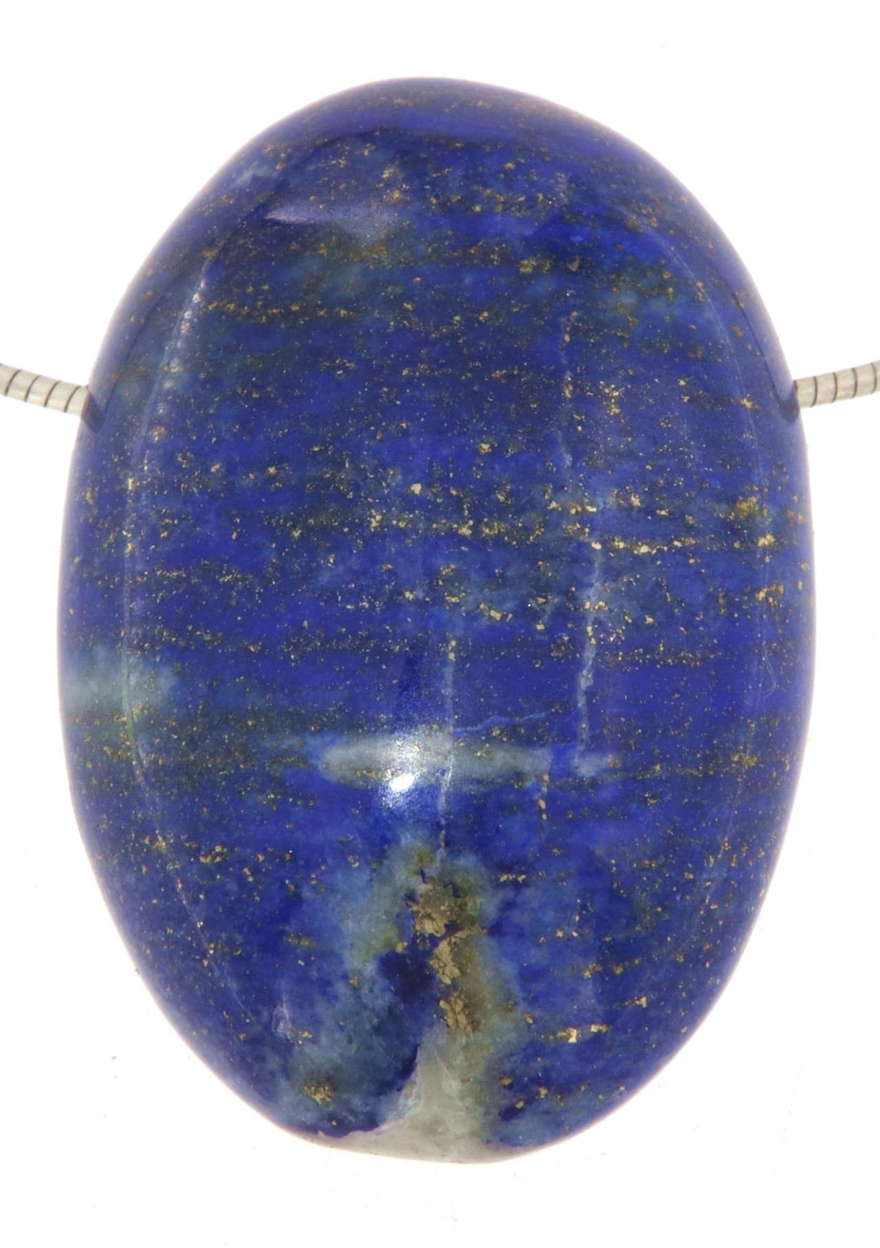 Ein edler Lapislazuli-Anhänger mit tiefblauer Farbe und feinen goldenen Pyrit-Einschlüssen – ein klassischer Edelstein voller Geschichte und Symbolkraft.