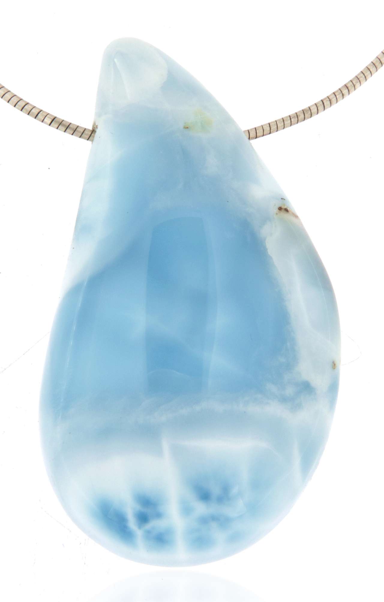Du erhältst den abgebildeten Larimar-Anhänger – ein großes, kraftvolles und zugleich harmonisch wirkendes Naturstück.