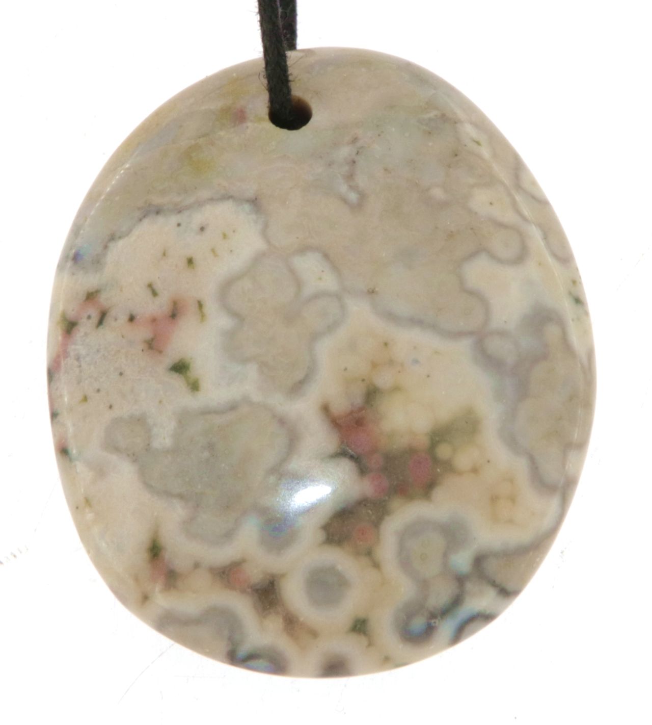 Edelstein-Trommelstein-Anhänger aus Ozeanjaspis – mit Stoffband