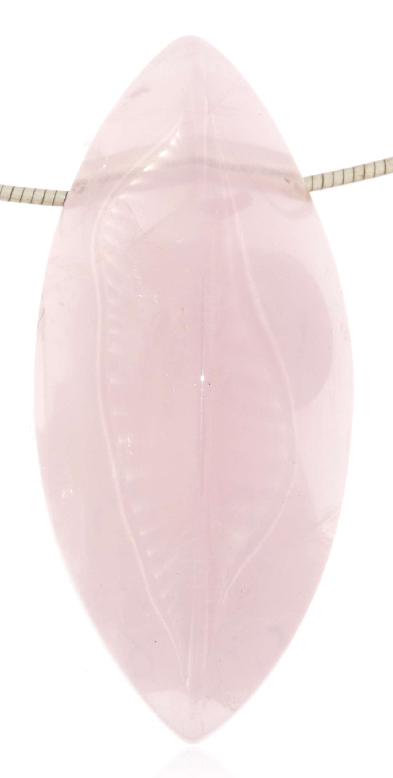 Sie erhalten genau den abgebildeten Rosenquarz-Navette-Trommelsteinanhänger – zart, natürlich und stilvoll zugleich.