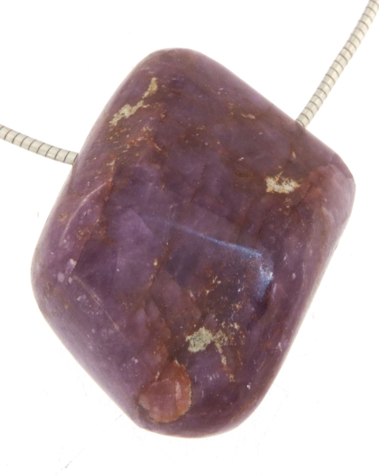 Ein eindrucksvoller Trommelstein-Anhänger aus Rubin, der durch seine intensive Farbgebung und natürliche Struktur besticht.