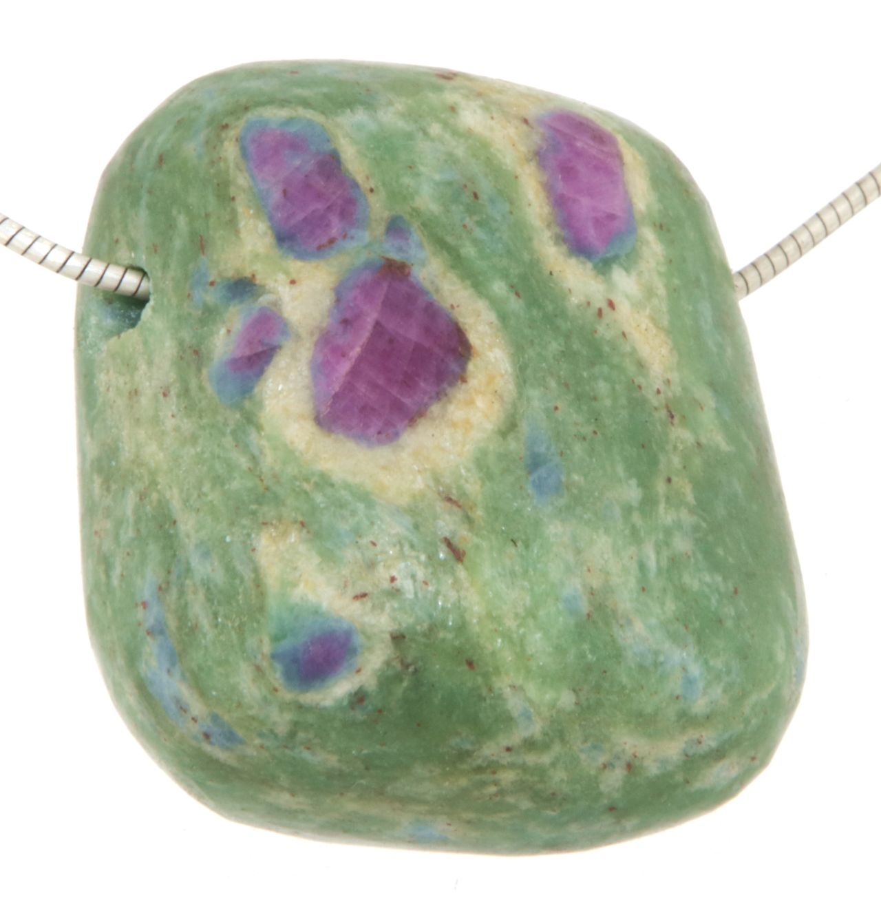 Ein außergewöhnlicher Edelsteinanhänger aus Rubin-Fuchsit, der durch seine harmonische Farbkombination und natürliche Struktur fasziniert.