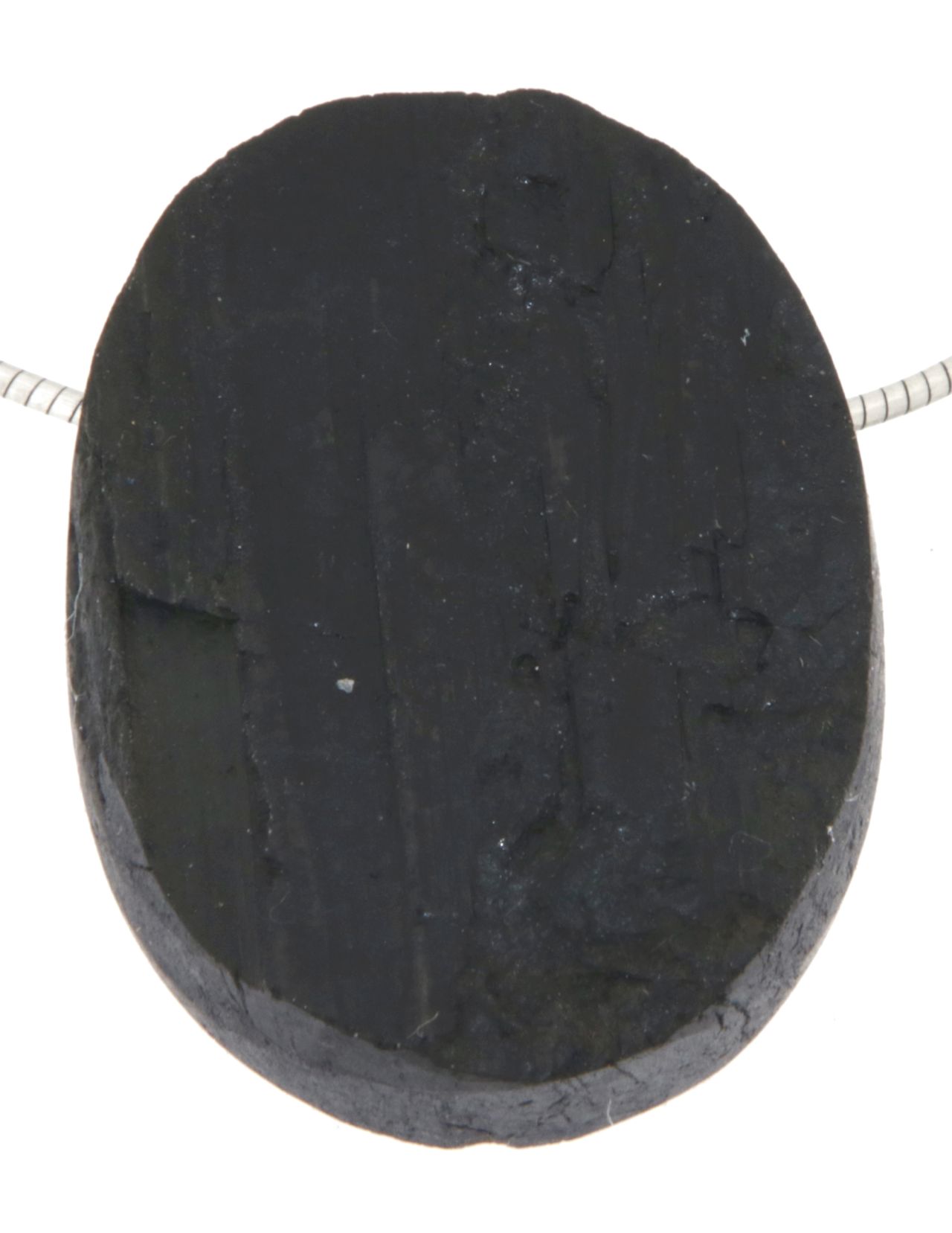 Ein markanter Turmalin-Anhänger, der durch seine tiefschwarze Farbe und natürliche Struktur beeindruckt.