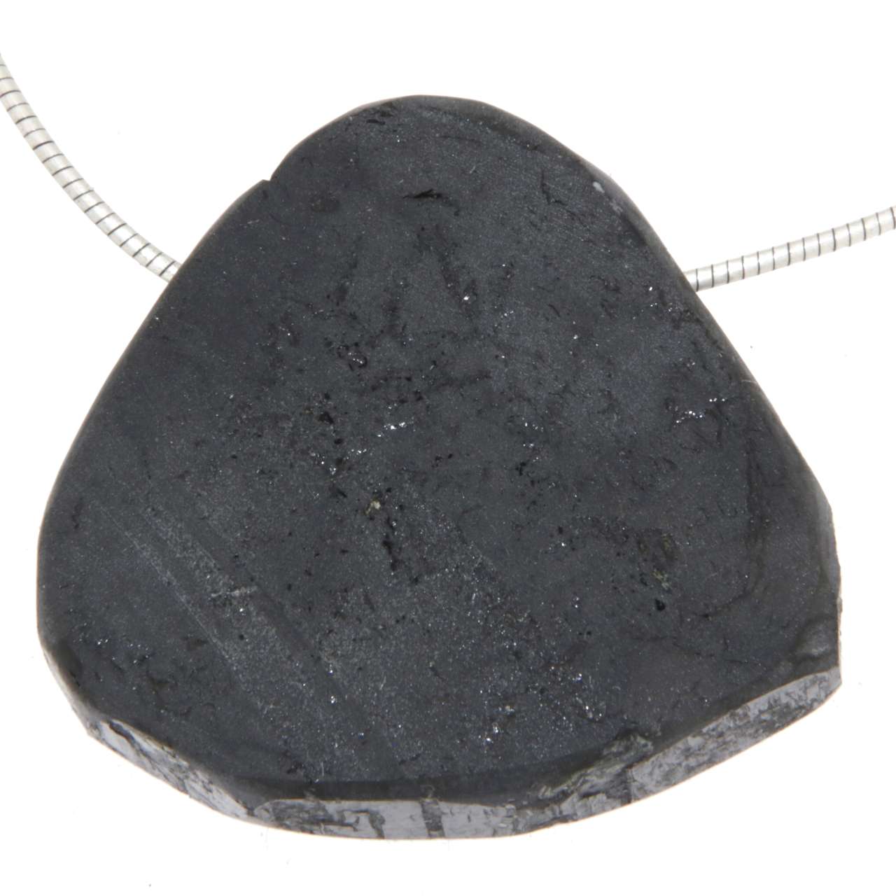 Ein außergewöhnlicher Anhänger aus schwarzem Turmalin (Schörl) – gefertigt aus dem Querschnitt eines echten Turmalinkristalls.