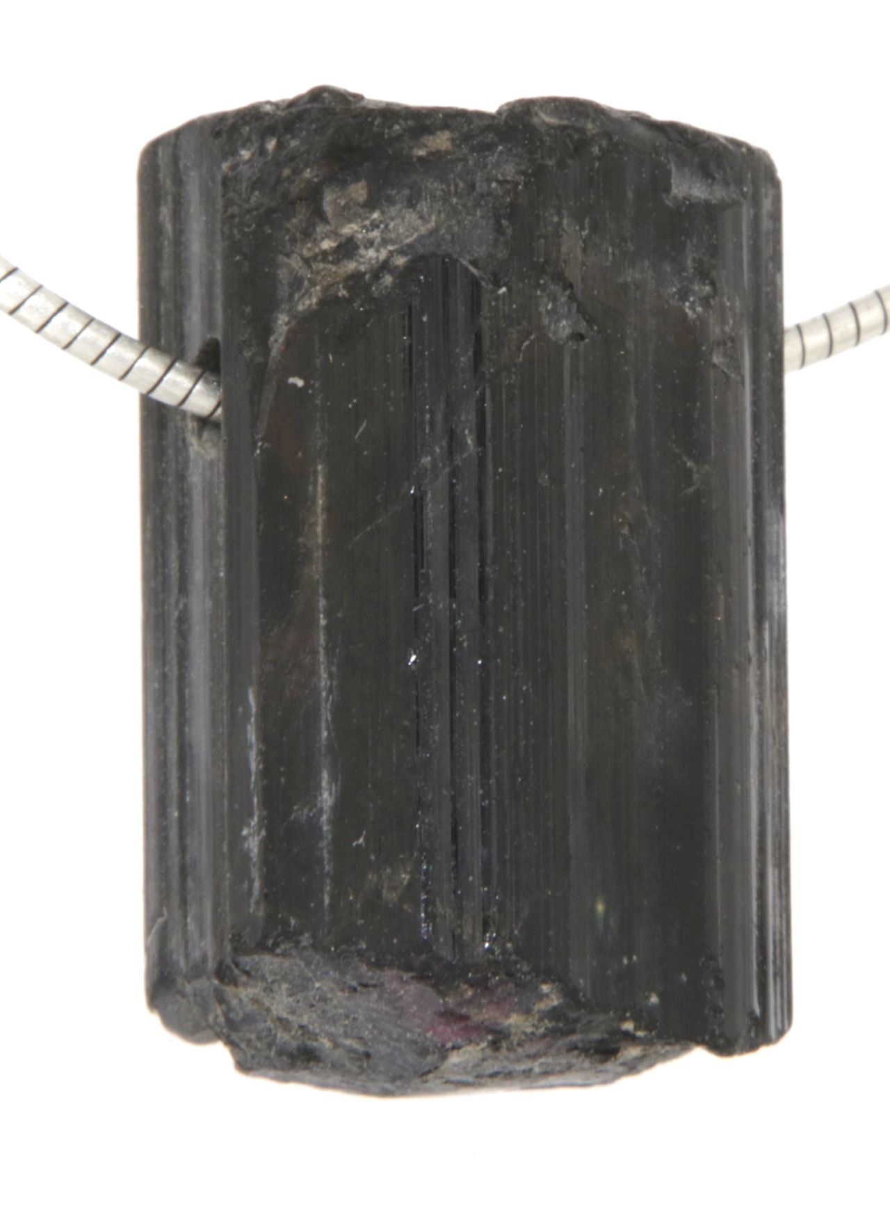 Die typische, leicht gerillte Oberfläche des Turmalinkristalls verleiht dem Anhänger eine kraftvolle Ausstrahlung und macht jedes Stück zu einem echten Naturunikat.