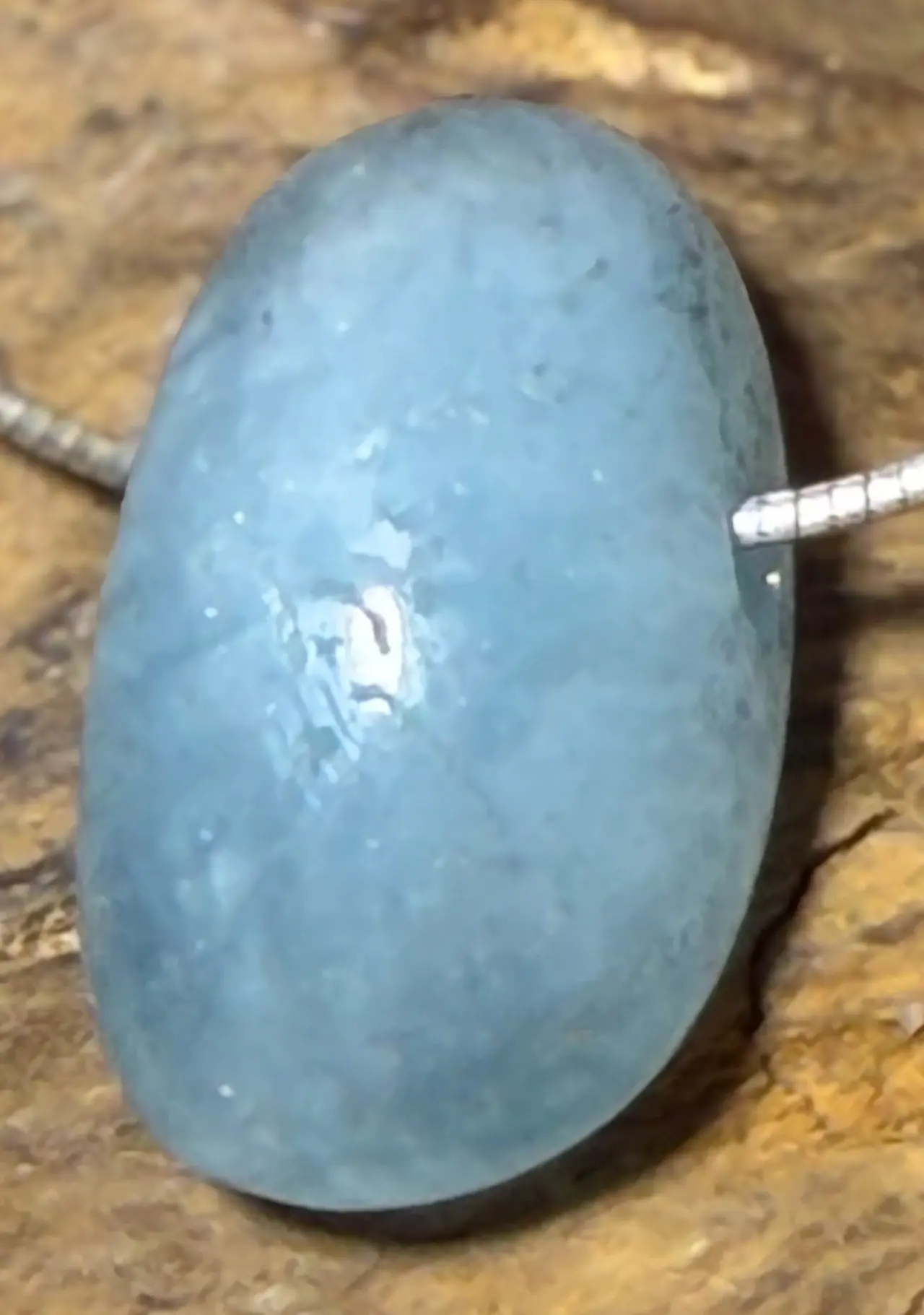 Edelsteinanhänger aus Aquamarin – polierter Trommelstein mit Stoffband