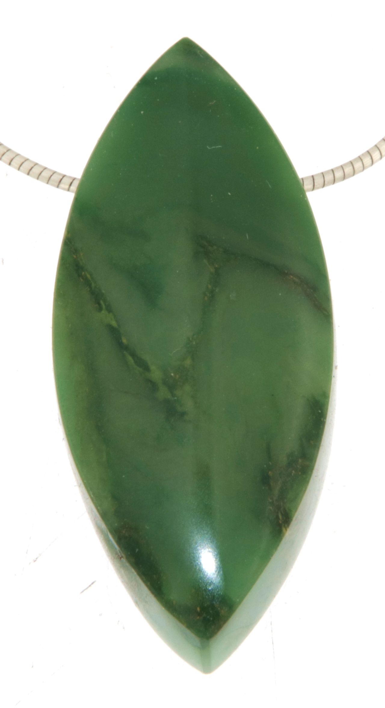 Edelstein-Anhänger aus Prasem (Navetteform) – mit Stoffband
