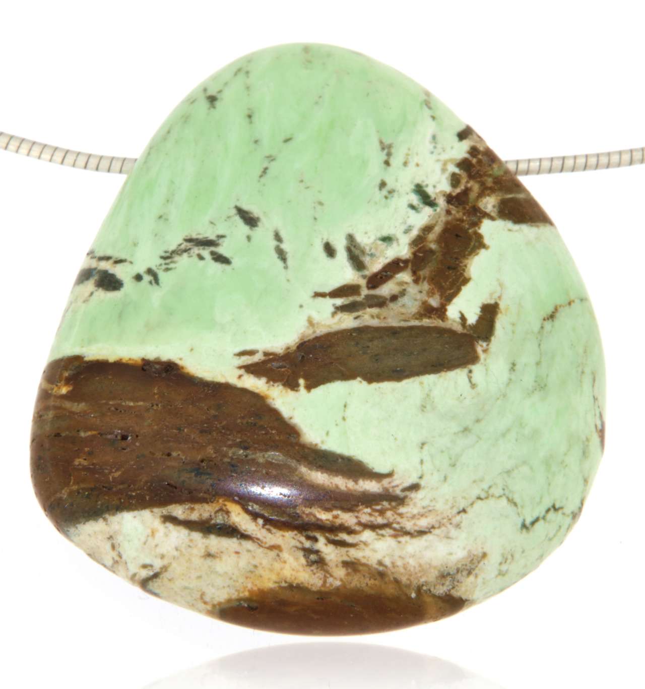Sie erhalten genau den abgebildeten Variscit-Trommelsteinanhänger – ein einzigartiges Stück Natur mit natürlicher Farbvielfalt und Struktur.