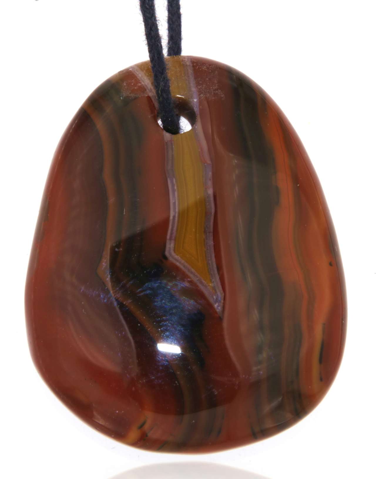 Die polierte Oberfläche bringt die feinen Strukturen und Farbverläufe eindrucksvoll zur Geltung und macht den Anhänger zu einem besonderen Blickfang.