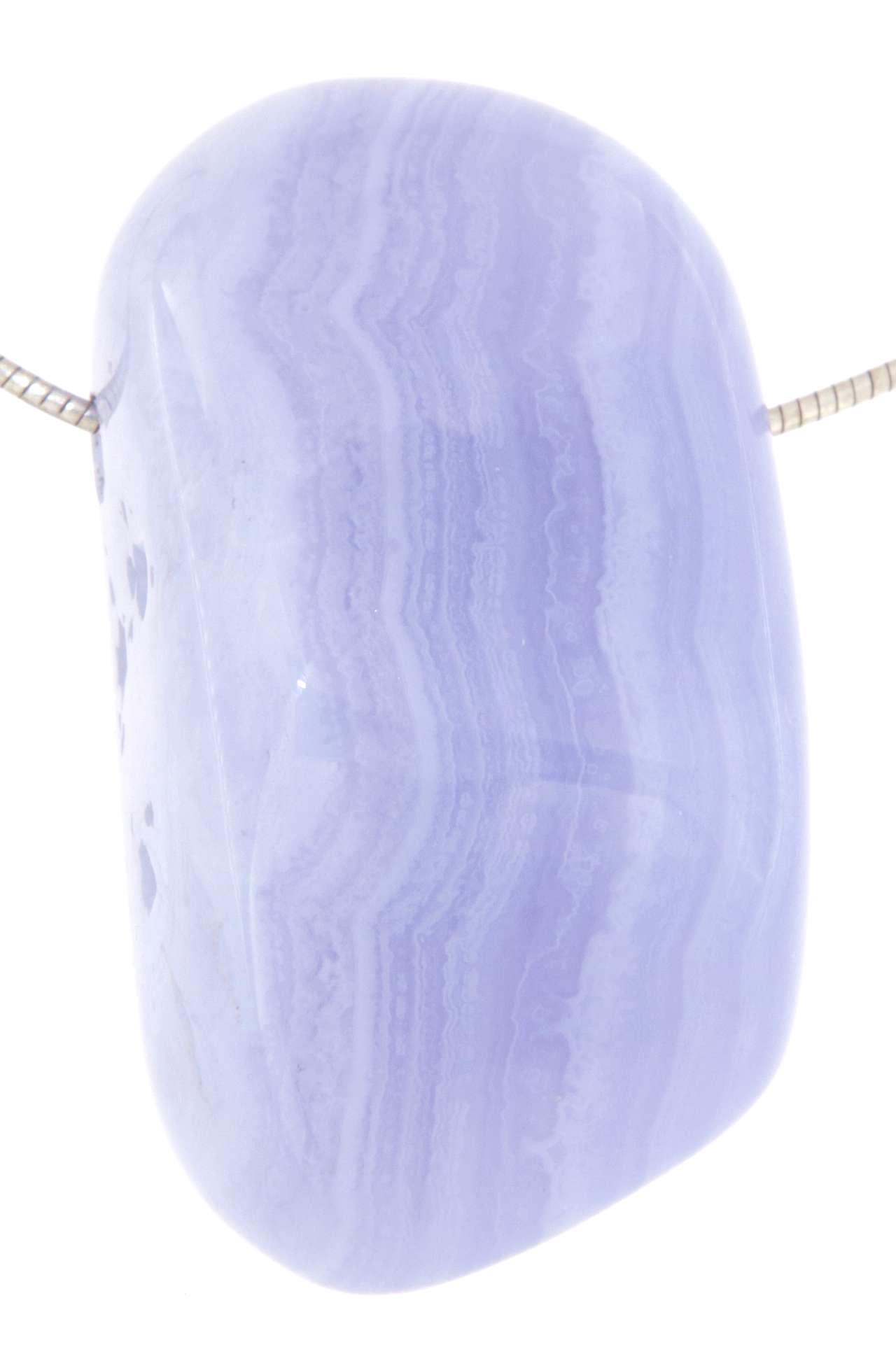 Edelstein Trommelstein Anhänger aus blauem Chalcedon – mit Stoffband