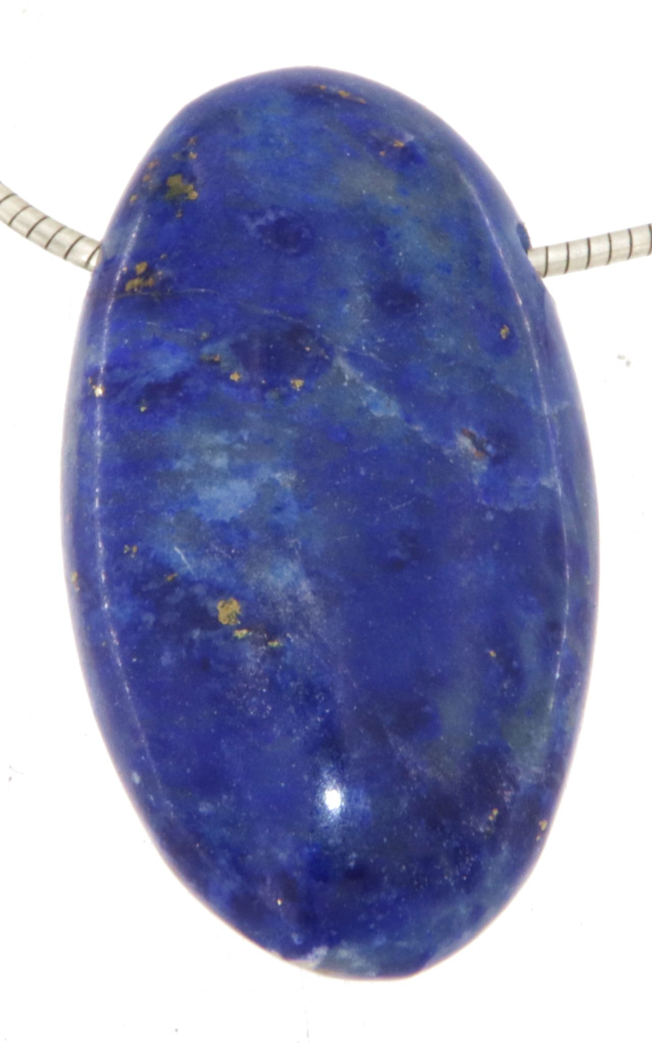 Ein edler Lapislazuli-Anhänger, der durch sein tiefes Königsblau und feine goldfarbene Pyrit-Einschlüsse besticht.