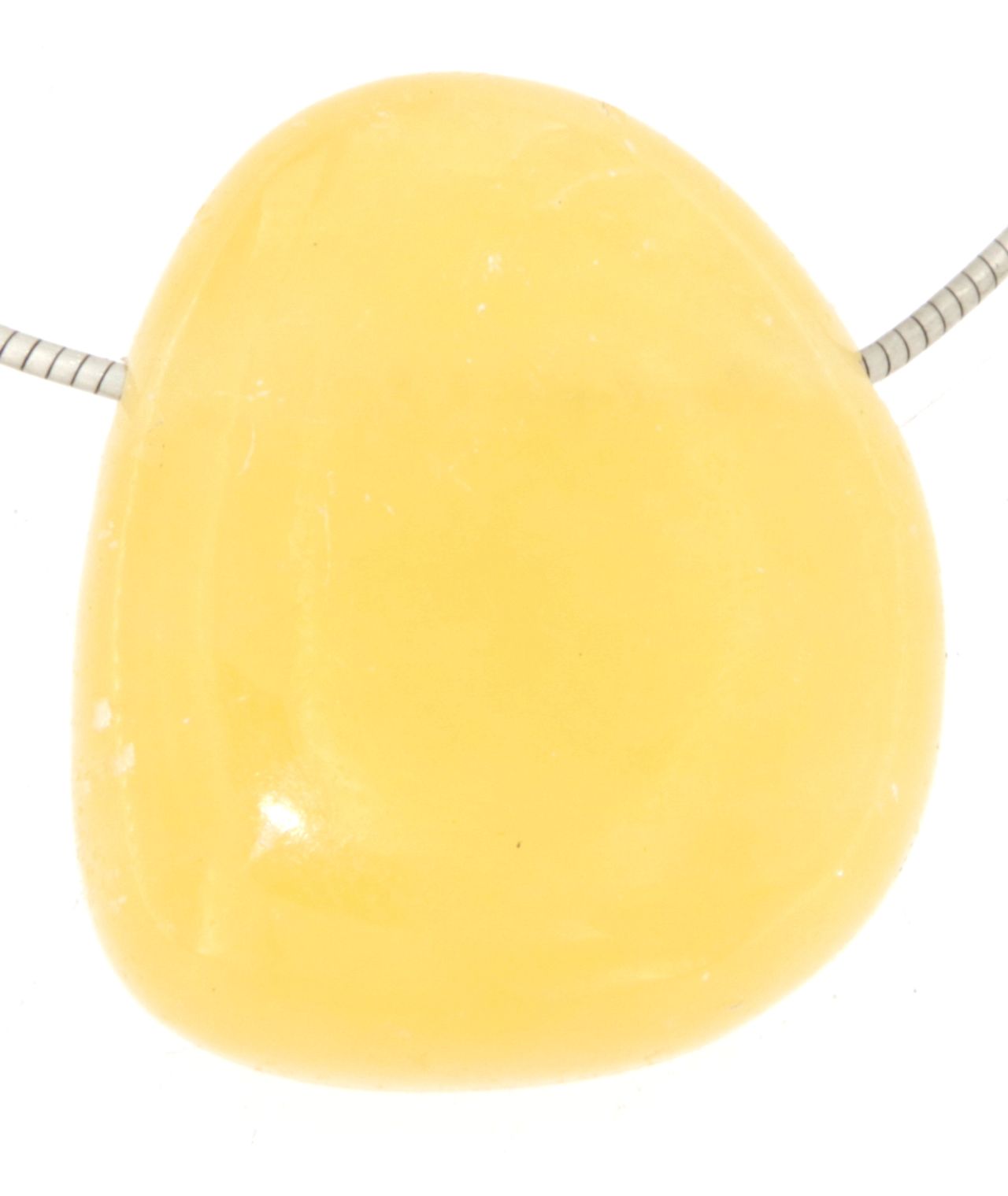 Du erhältst den abgebildeten Orangencalcit-Trommelstein-Anhänger – ein echtes Unikat der Natur.