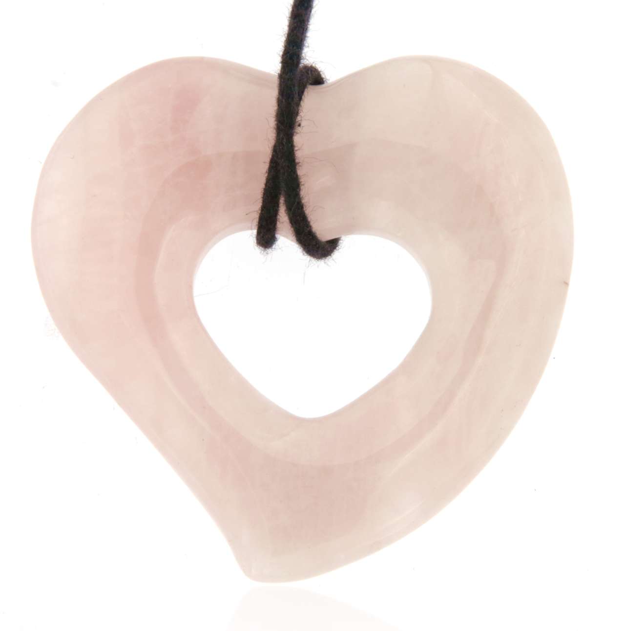 Lieferumfang: Abgebildeter Rosenquarz-Herzanhänger inkl. Stoffband