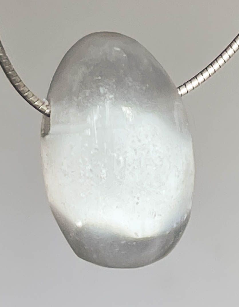 Ein eleganter Selenit-Anhänger, der durch seinen feinen, seidigen Glanz und seine klare, weiße Farbgebung besticht.