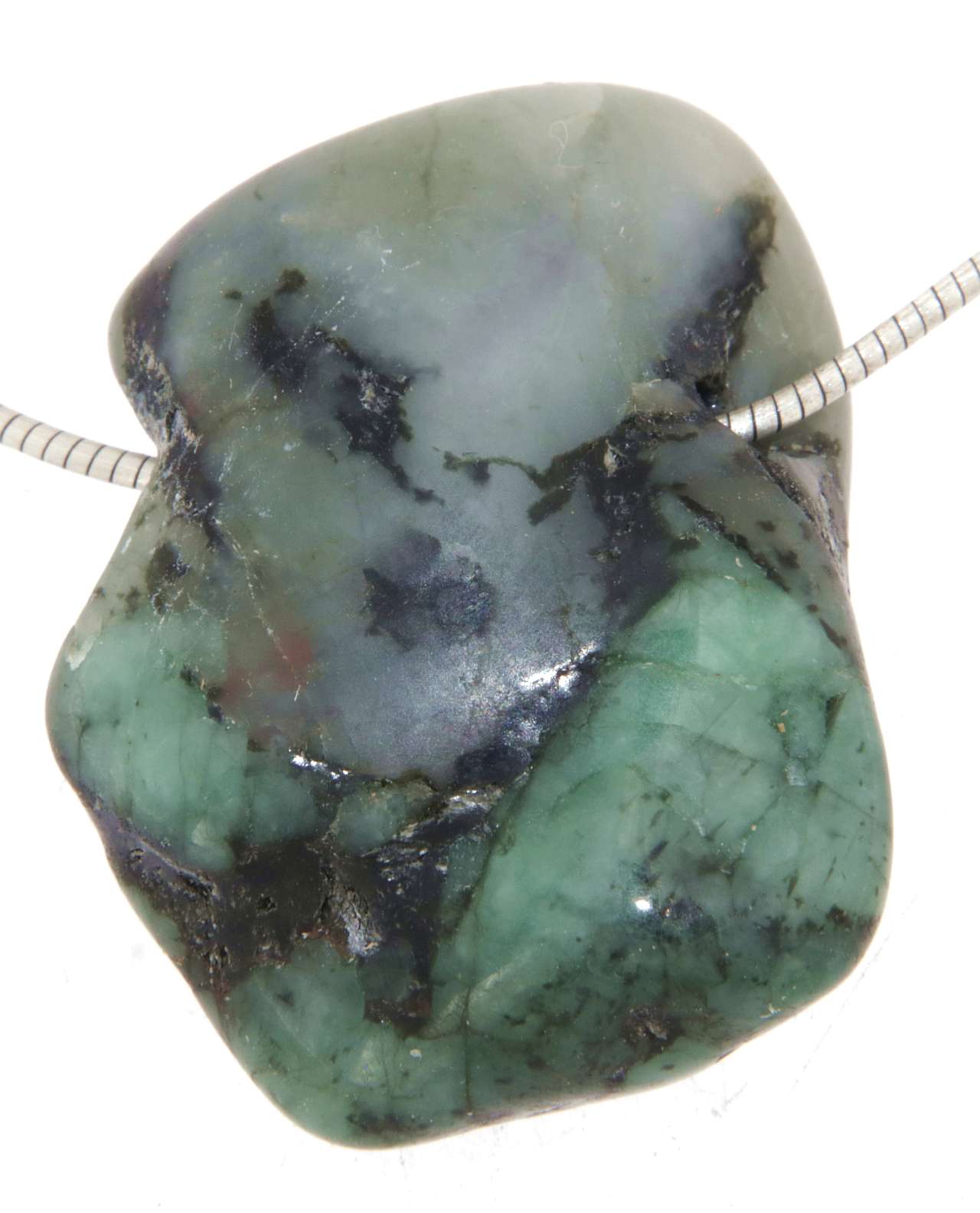 Sorgfältig geschliffen und poliert, zeigt dieser Anhänger die einzigartige Struktur und Farbintensität des Smaragds – jedes Stück ist ein handverlesenes Unikat der Natur.