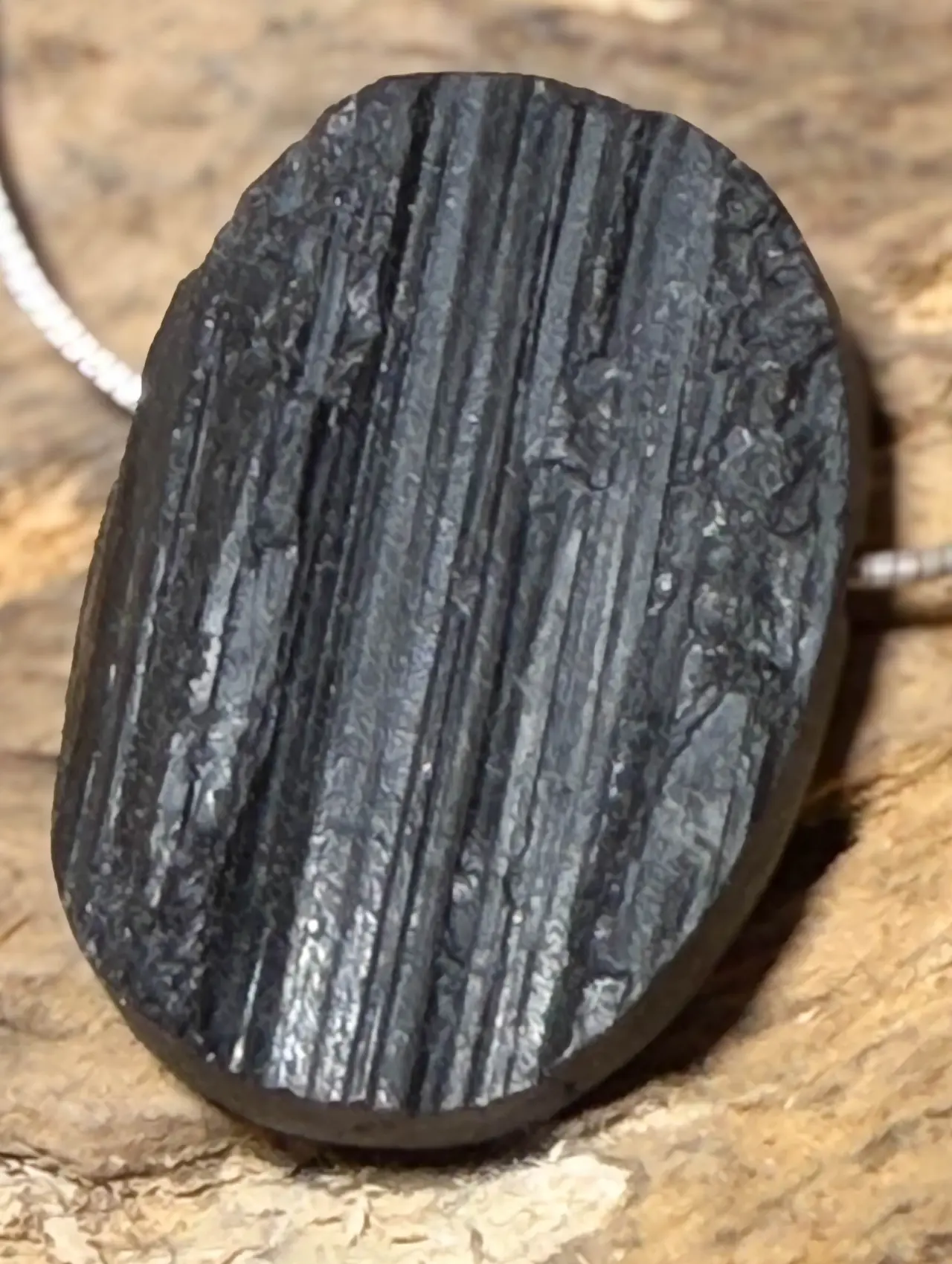 Ein edler Turmalin-Anhänger (Schörl) mit tiefschwarzer Farbgebung und feinem, natürlichem Glanz.