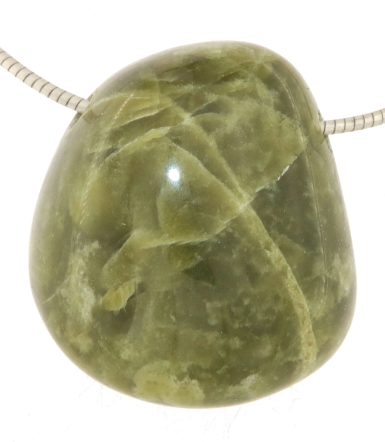 Edelstein-Trommelstein-Anhänger aus Vesuvianit – mit Stoffband