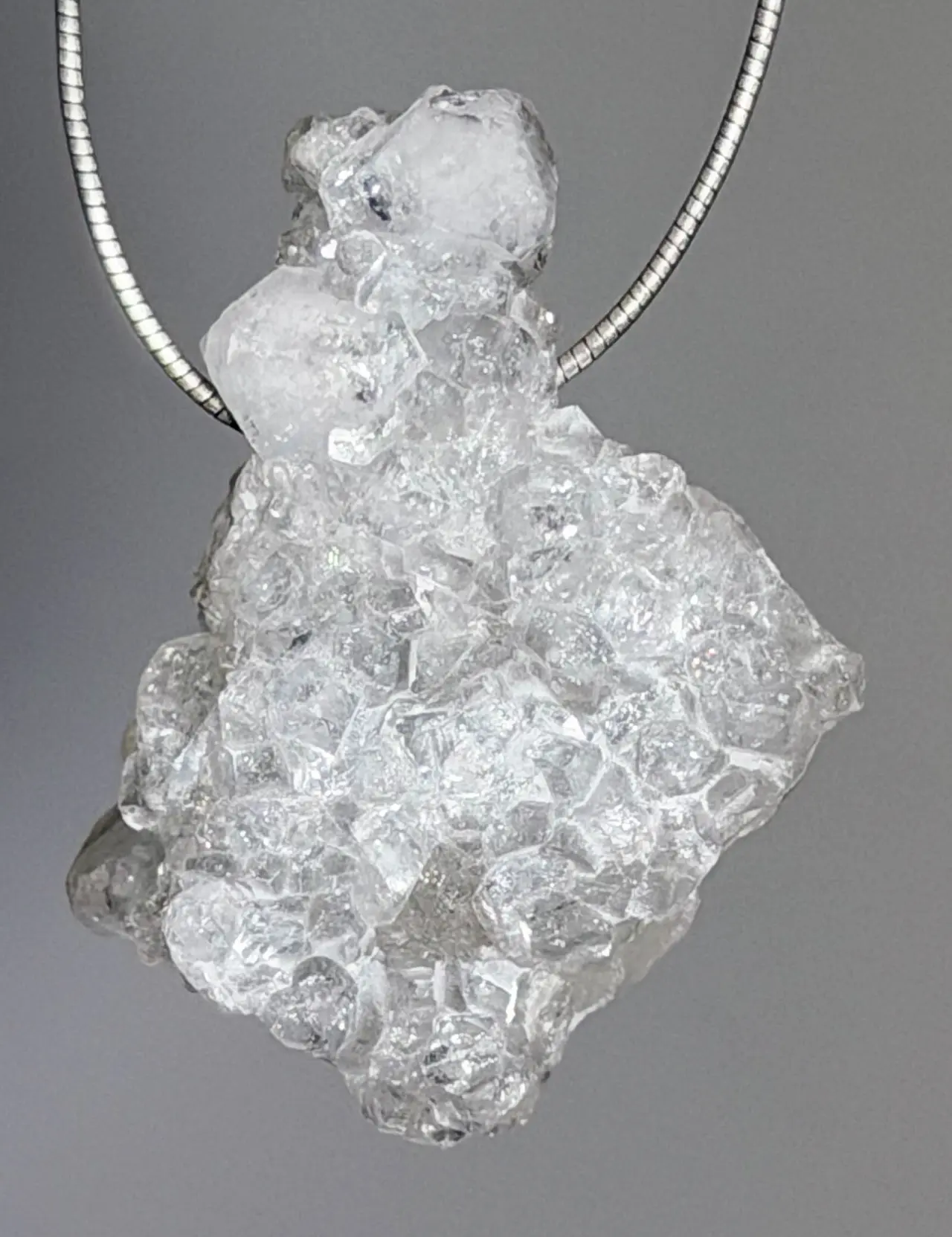 Du erhältst den abgebildeten Apophyllit-Anhänger – ein stilvolles Schmuckstück mit natürlicher Klarheit und feinem Glanz.