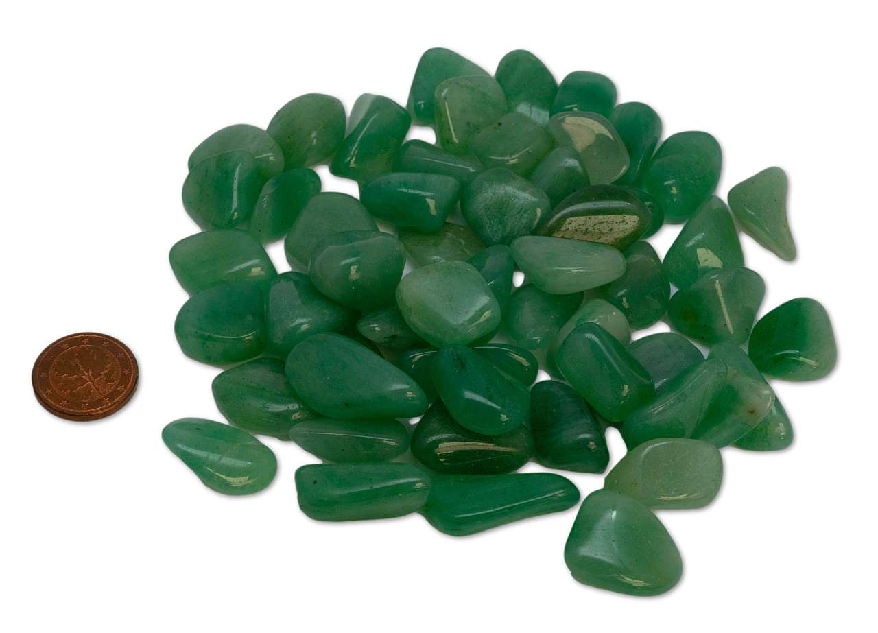 Mit einer Größe von ca. 5 – 15 mm eignen sich die Aventurin Trommelsteine perfekt für Energiearbeit, Meditation, Edelsteinwasser, Dekoration oder Bastel- und Schmuckzwecke. Sie bringen harmonische Frische in jeden Raum und wirken ausgleichend und beruhigend. Das Foto zeigt ein Musterbeispiel – abgebildet sind ca. 100 g. Die Steine sind in verschiedenen Mengen erhältlich.