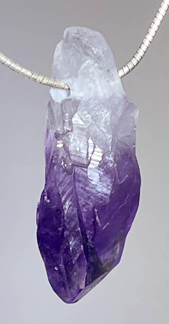 Ein hochwertiger Amethyst-Anhänger in Spitzenform aus Uruguay – unbehandelt, naturbelassen und sorgfältig poliert.
