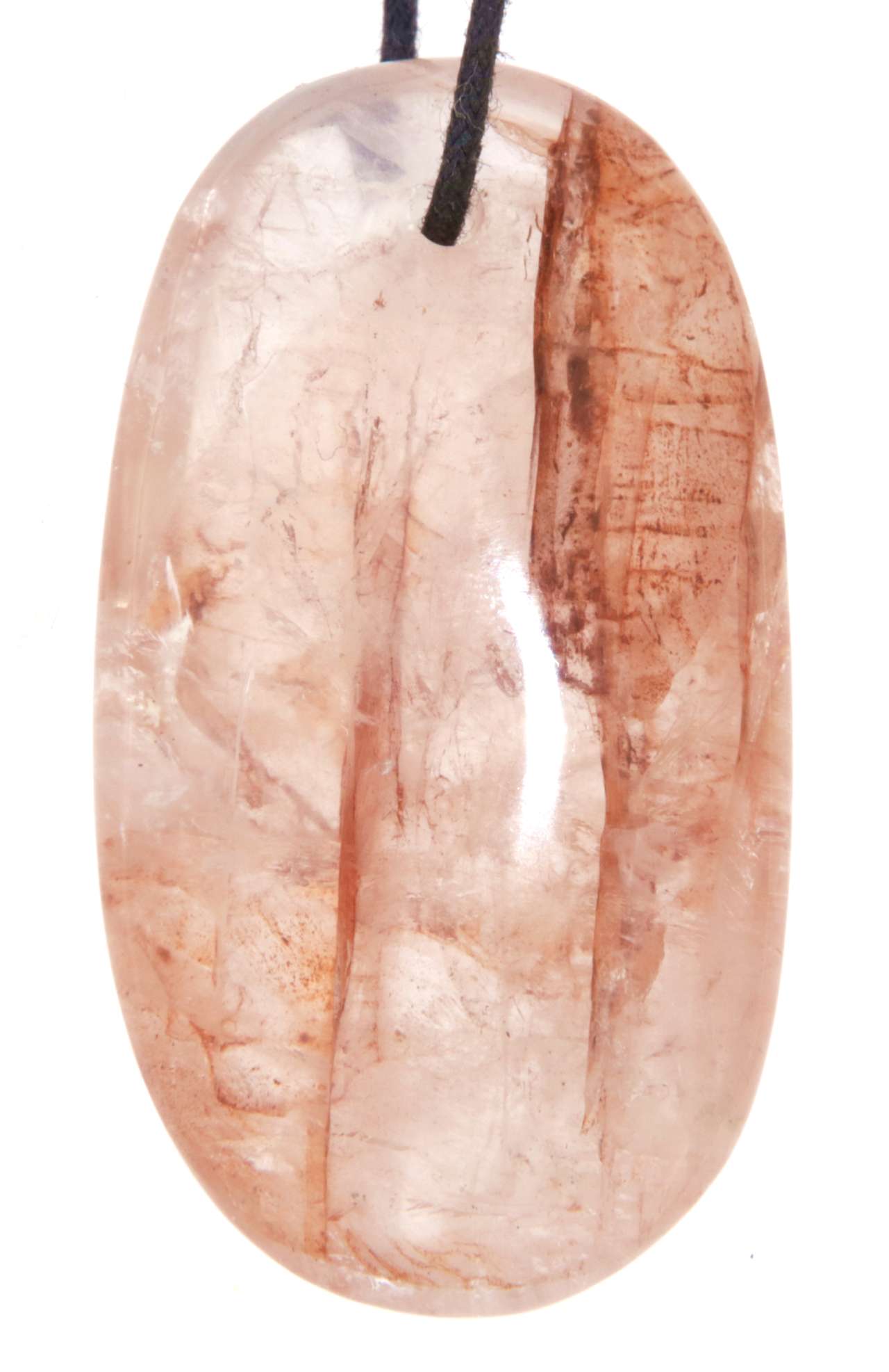 Edelstein-Trommelstein-Anhänger aus Erdbeerquarz – mit Stoffband
