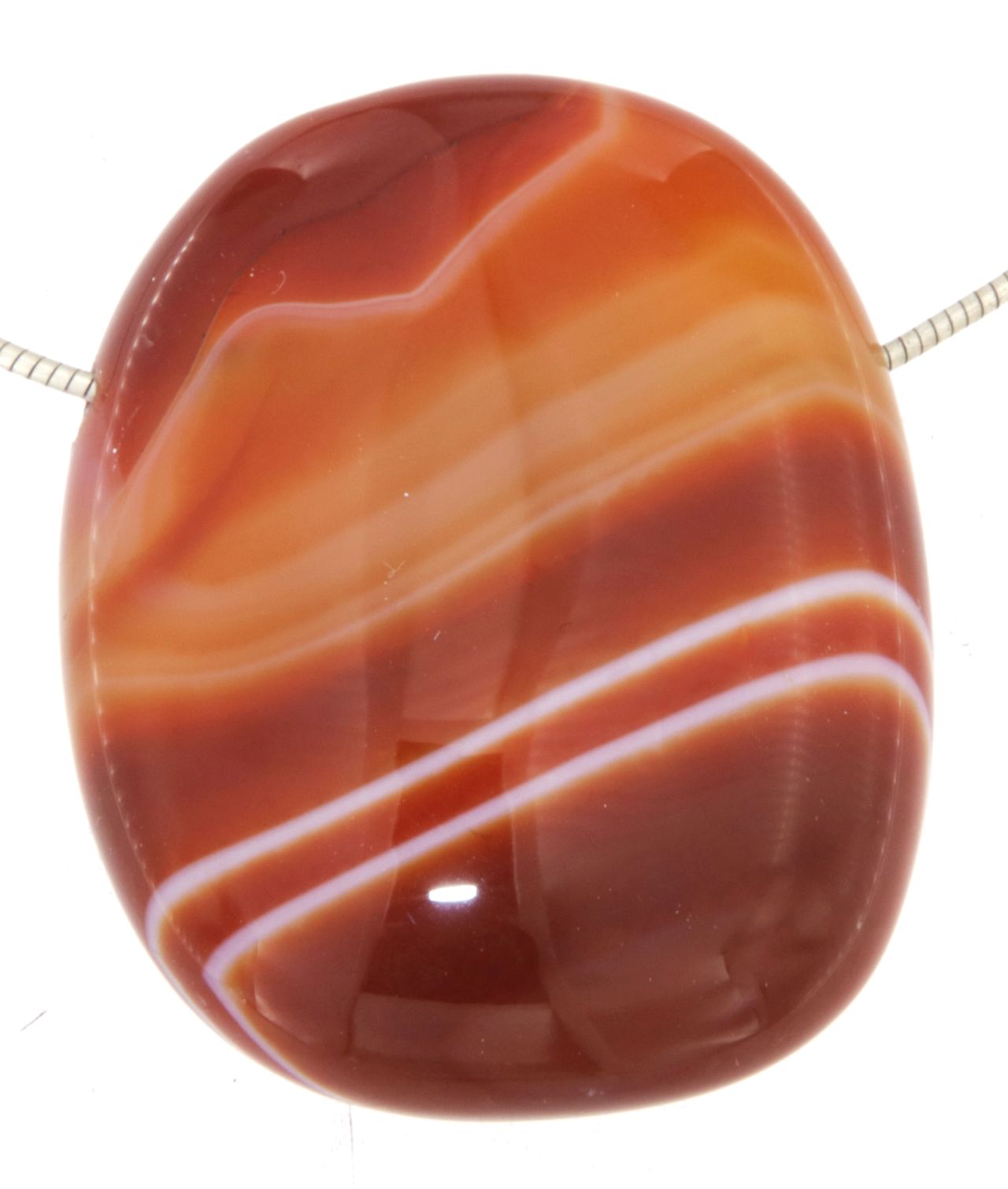 Ein leuchtender Karneol-Anhänger, der durch seine warmen, orange- bis rötlichbraunen Farbtöne und seine sanfte Transparenz besticht.