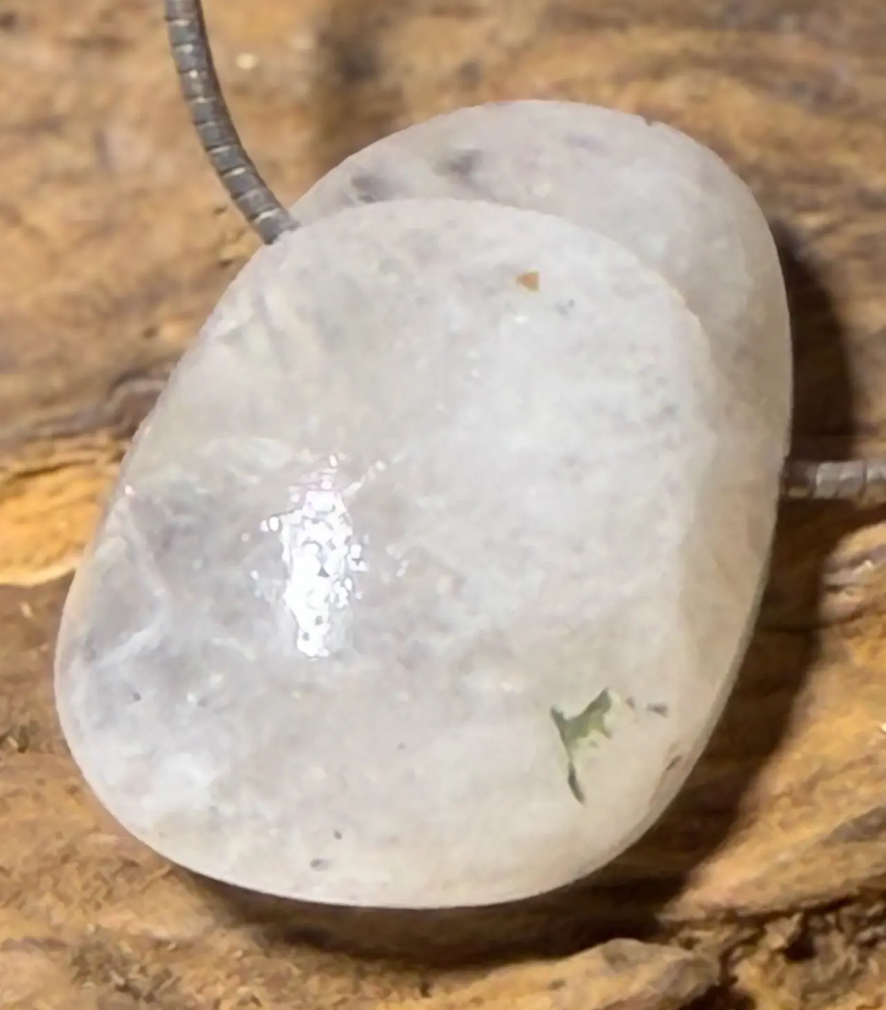 Je nach Lichteinfall zeigt der Stein einen sanften, bläulich schillernden Glanz, der seine natürliche Schönheit besonders betont.