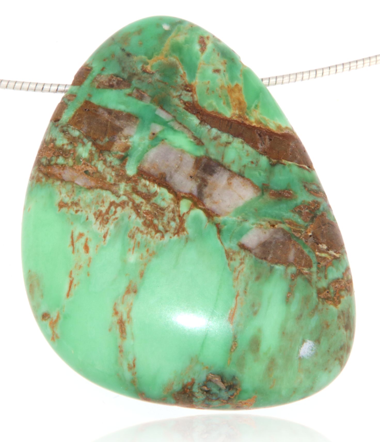 Ein außergewöhnlicher Variscit-Anhänger, der durch seine sanft-grünen bis türkisfarbenen Nuancen und seine feine, natürliche Maserung begeistert.