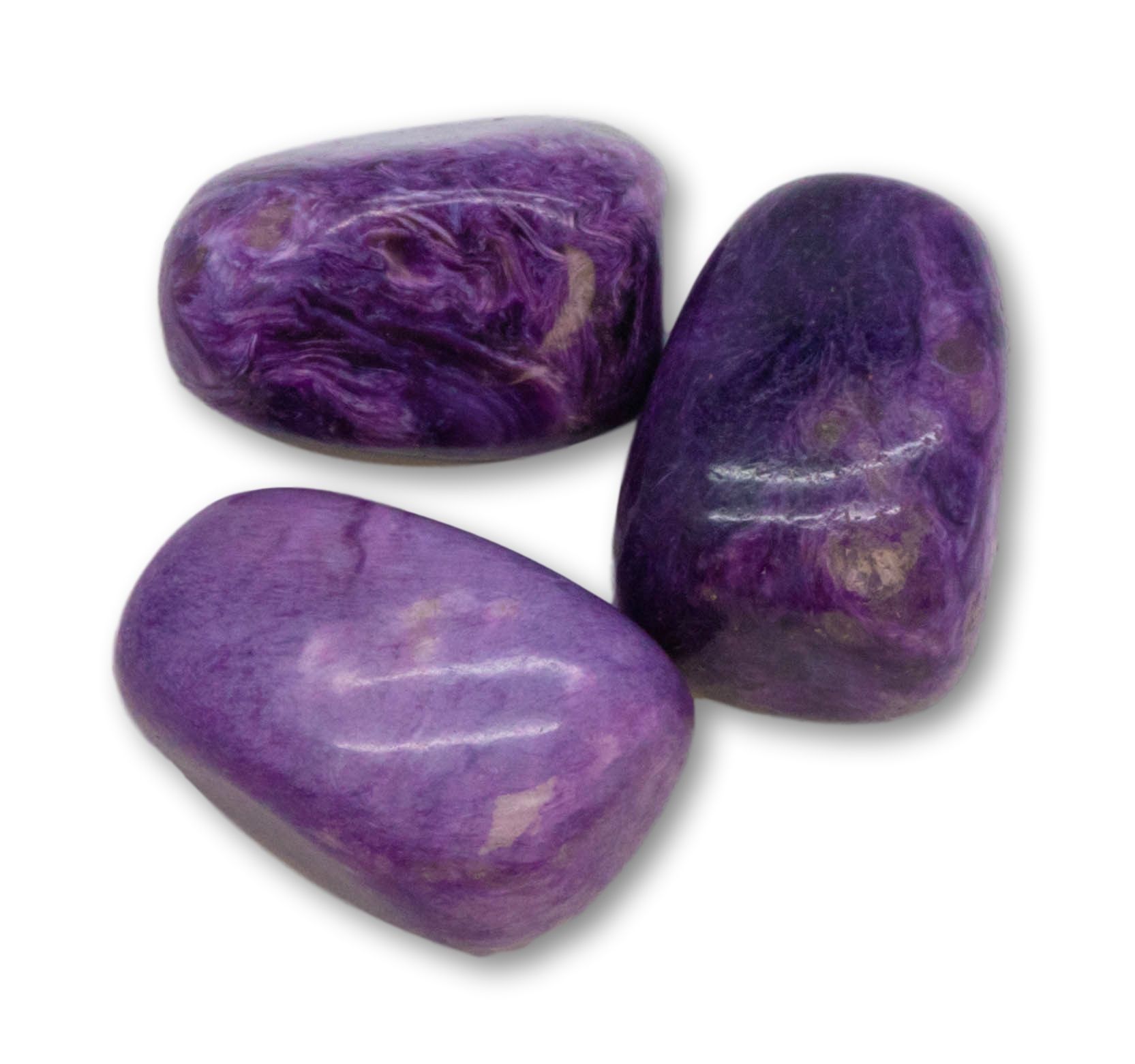 Der Charoit ist ein außergewöhnlich schöner Edelstein, der durch seine faszinierende violette Farbgebung mit Wirbel- und Maserstrukturen besticht. Jeder Stein zeigt eine einzigartige Kombination aus Lila-, Flieder- und Weißtönen, die ihn zu einem echten Blickfang machen. In A-Qualität geschliffen und poliert, liegt der Charoit angenehm glatt in der Hand und beeindruckt durch seinen seidigen Glanz.