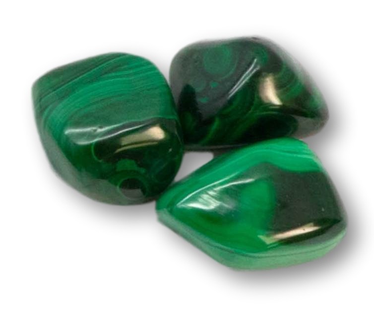 Der Malachit ist ein klassischer Edelstein, der durch seine kräftige grüne Farbe und die markante Bänderung sofort ins Auge fällt. Jede feine Linie und Schattierung macht ihn zu einem faszinierenden Natur-Unikat. Die Steine in A-Qualität sind sorgfältig poliert und überzeugen durch ihre glatte Oberfläche und intensive Farbwirkung.