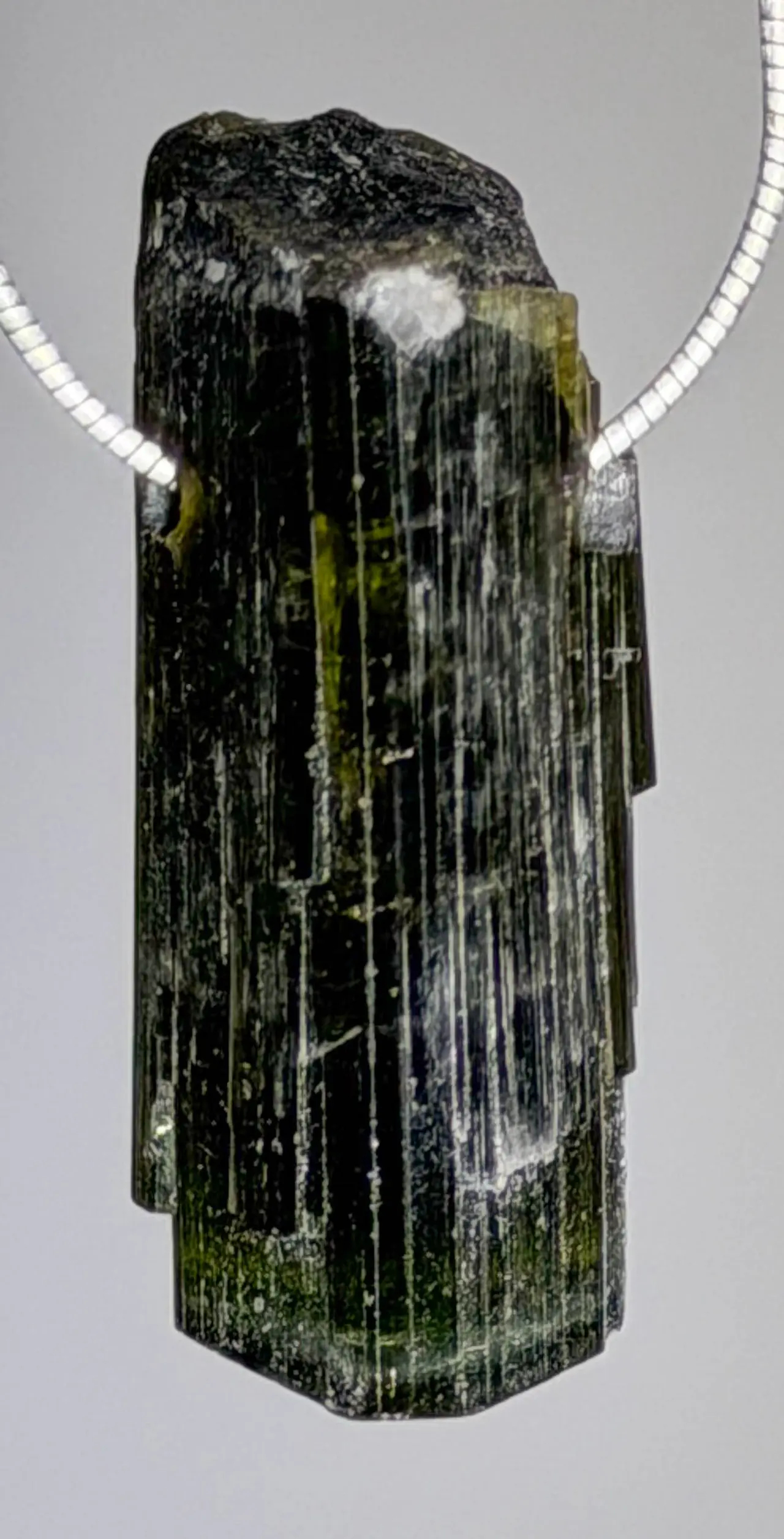 Du erhältst genau den abgebildeten grünen Turmalin-Anhänger – ein natürlich kristalliner Edelstein mit besonderem Ausdruck.