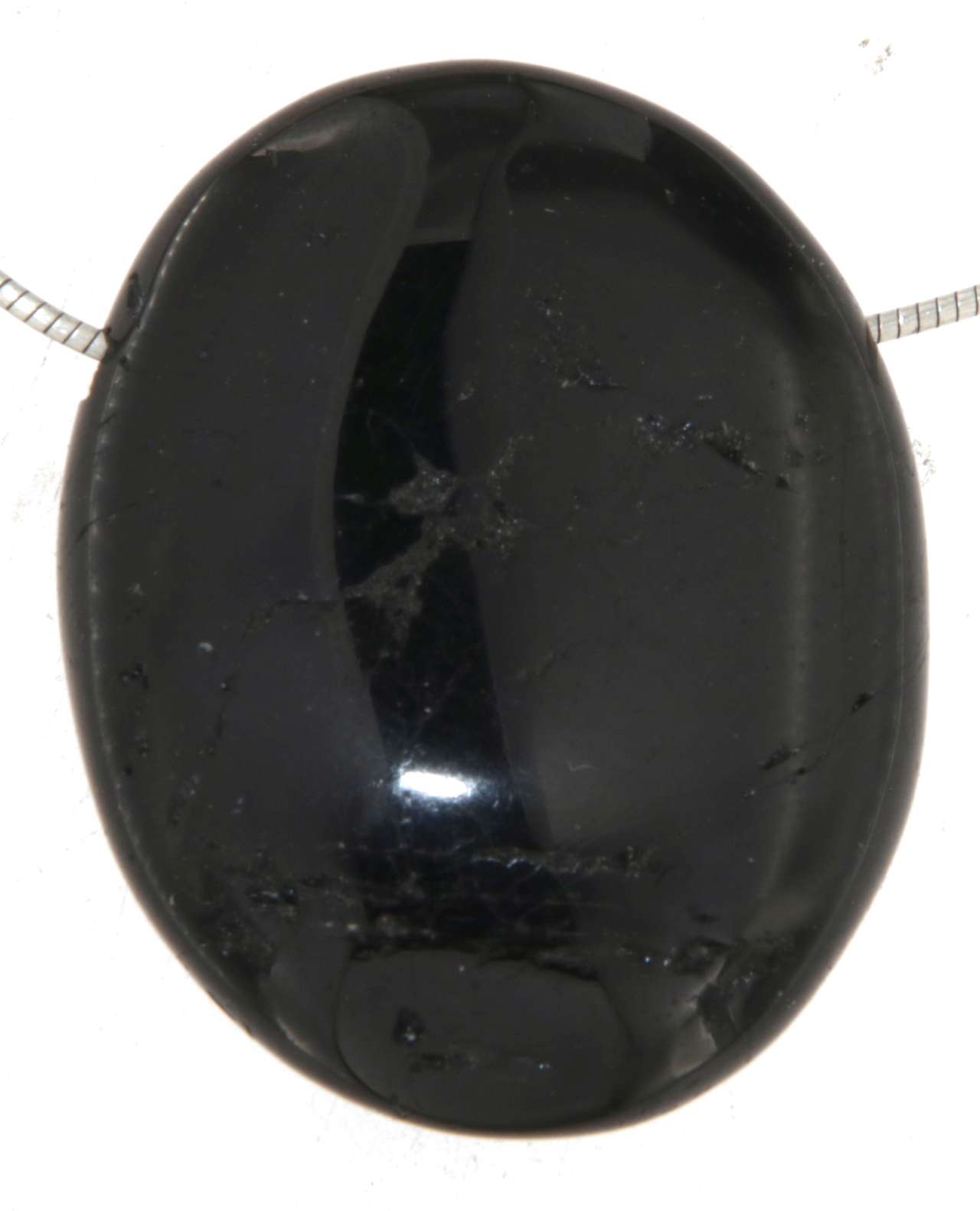 Edelstein Trommelstein Schmuck Anhänger aus schwarzem Turmalin (Schörl) – mit Stoffband