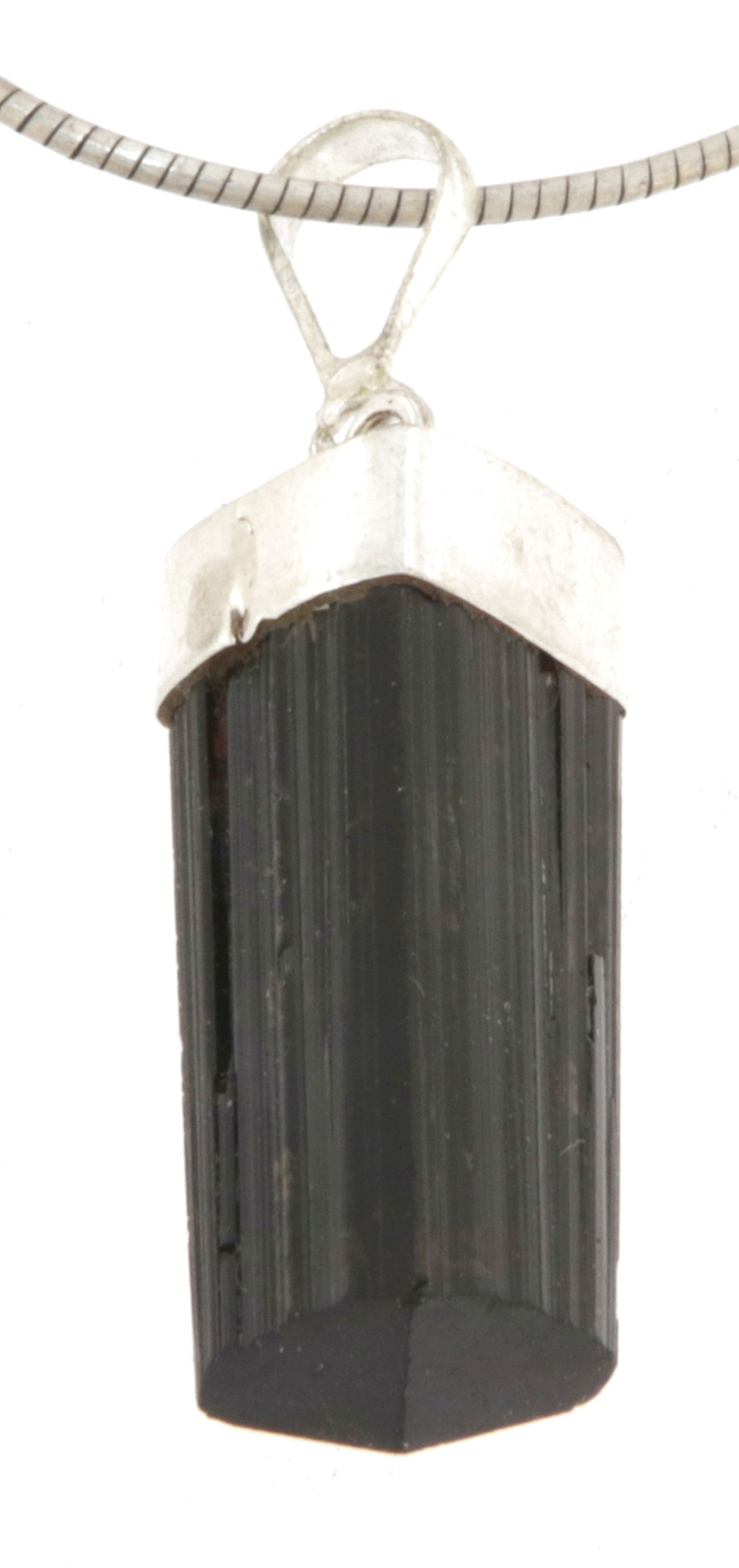 Anhänger „Schörl – Schwarzer Turmalin“ mit 925er Silberöse und Stoffband