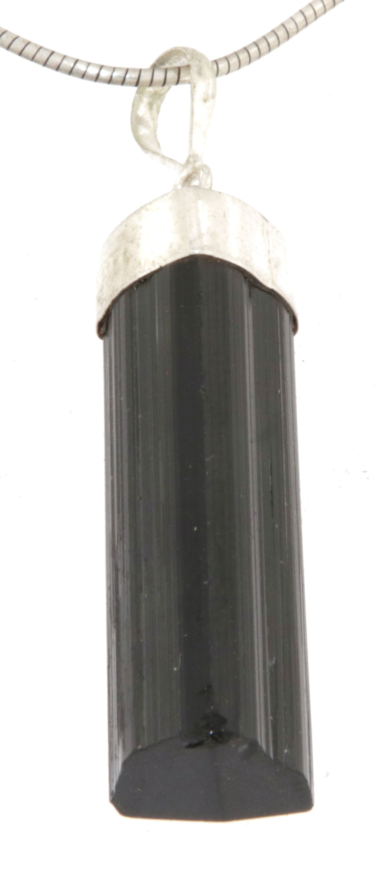 Anhänger „Schörl – Schwarzer Turmalin“ mit 925er Silberöse und Stoffband
